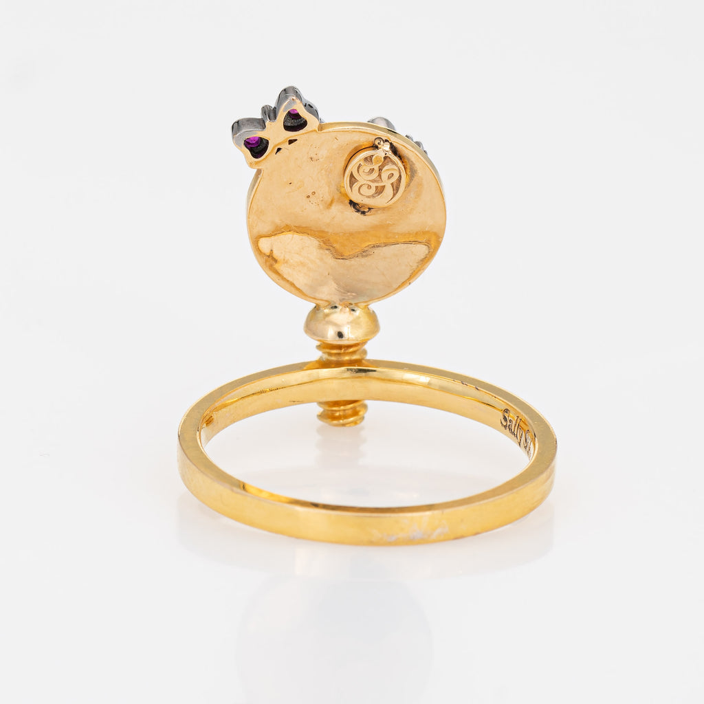 Sally Sohn Happy Face Ring Diamond Ruby Sz 5.25 Estate Fine Signed Jewelry