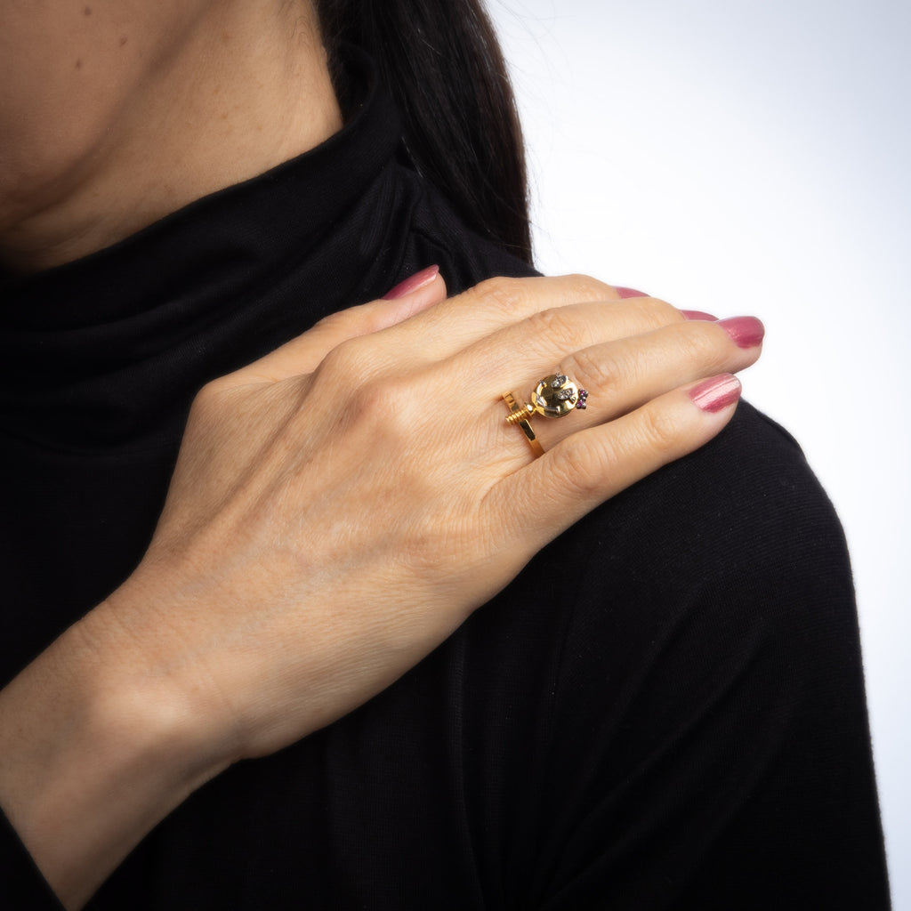 Sally Sohn is a South Korean jewelry designer known for one-of-a-kind wearable works of art. The unique gemstone set Happy Face makes a statement on the hand. The low-rise ring (4mm - 0.15 inches) sits comfortably on the finger.