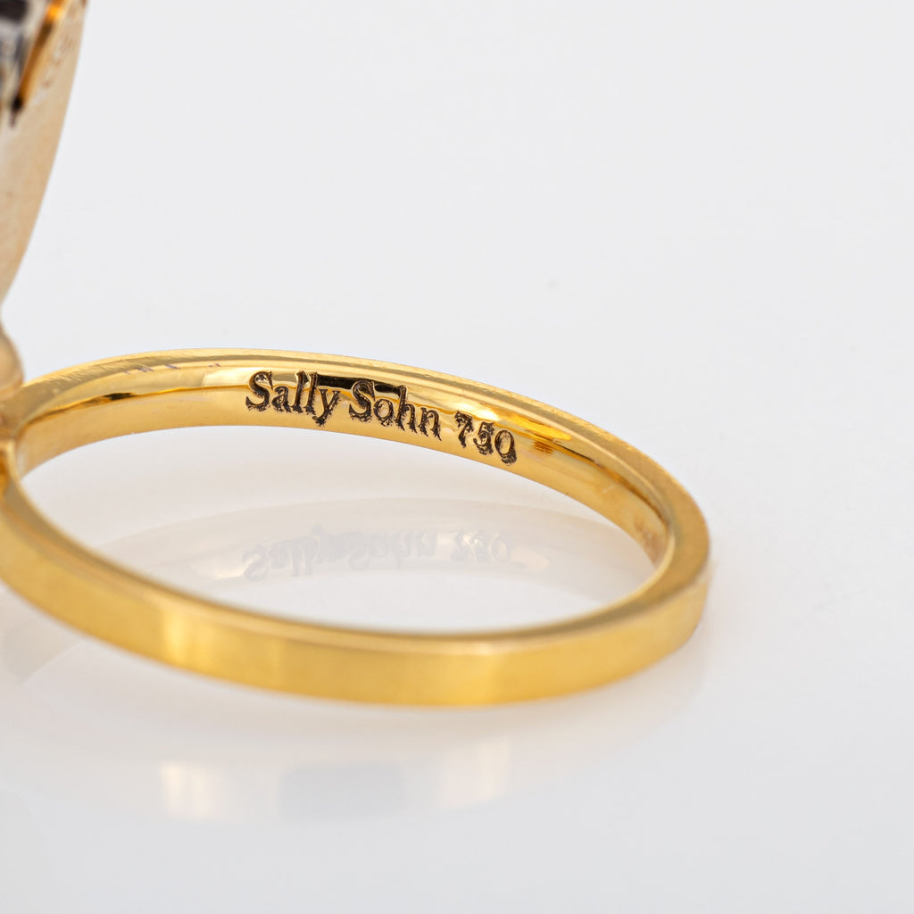 Metal & Hallmark: 18 karat yellow gold. The ring is hallmarked "750" for 18k gold and "Sally Sohn"