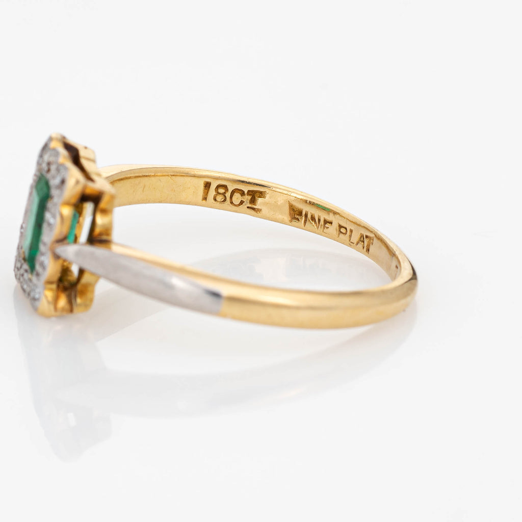 Metal & Hallmark: 18 karat yellow gold and platinum. The ring is hallmarked "18ct" and "PLAT"