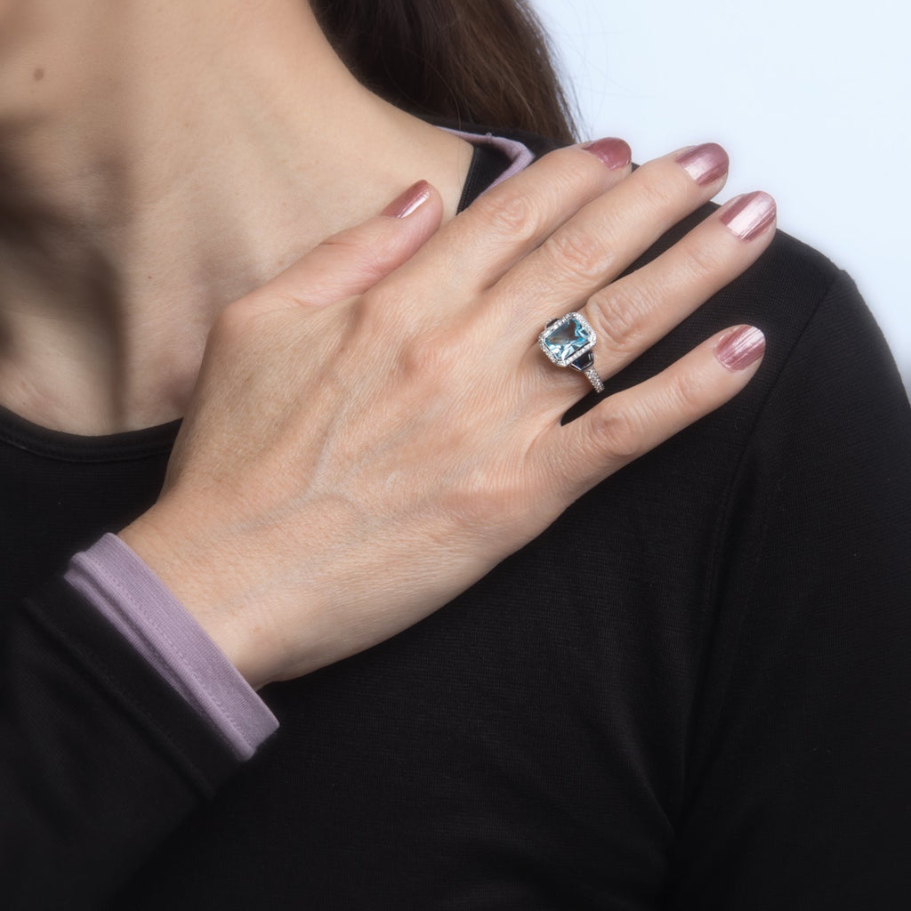 The colorful ring would make a lovely cocktail or alternative engagement ring. The ring is impactful in design and ideal worn day or night.