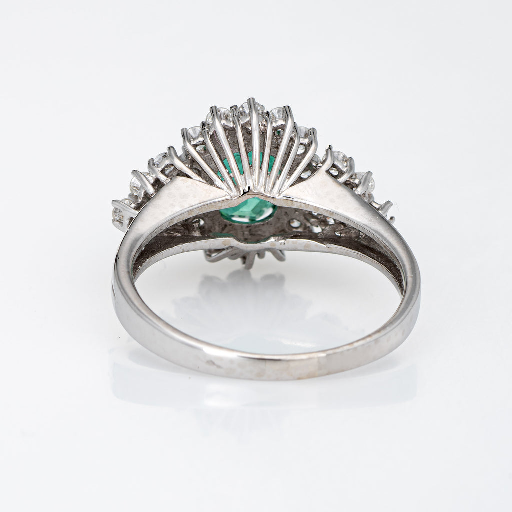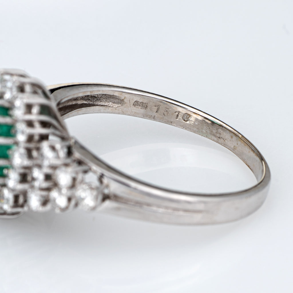Stylish emerald & diamond ring (circa 2000s) crafted in 14k white gold.