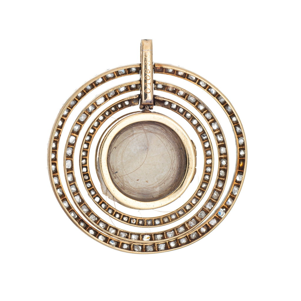 Metal & Hallmark: 18k yellow gold and platinum. The pendant is not hallmarked though it has tested positive for 18k gold and platinum.