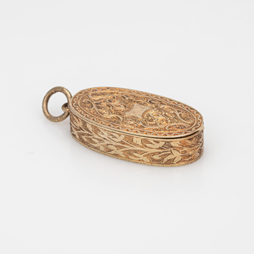 Distinct antique Victorian pill & match box pendant (circa 1880s to 1900s) crafted in 14 karat rose gold.
