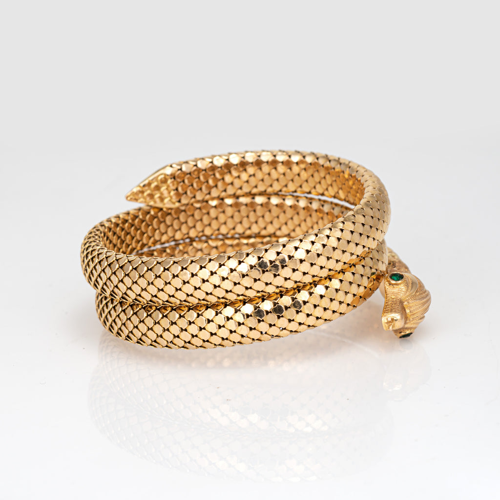 For centuries the snake has represented eternal love and faithfulness. Deeply popular during the Victorian era, particularly after Price Albert gifted Queen Victoria a serpent shaped engagement ring. With 2025 the Year of the Snake the bracelet is a wearable piece of history to treasure now and an investment for the future. Worn alone as a statement piece or stacked for an unforgettable look. Weighing 71.5 grams the bracelet has a heavy feel to the touch.