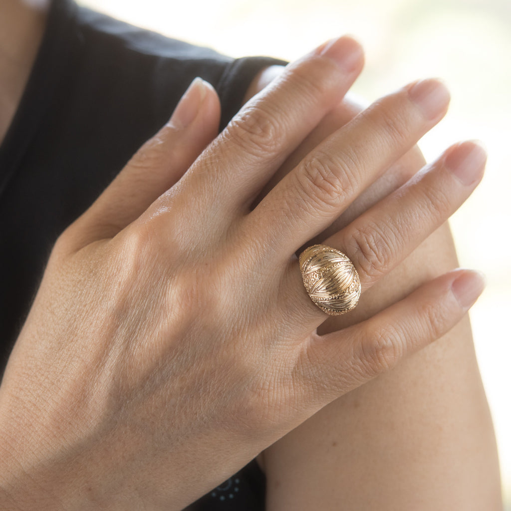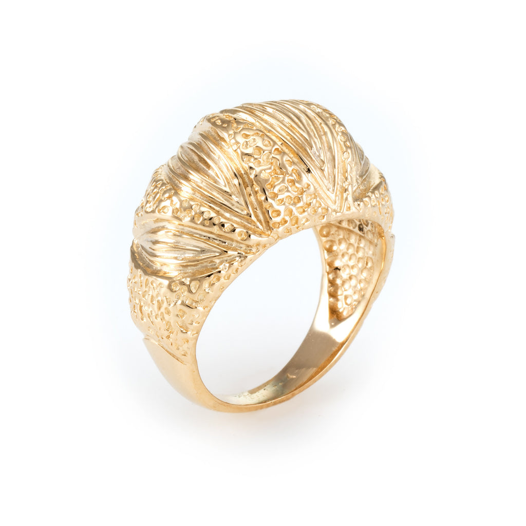 Textured Dome Cocktail Ring Vintage 14k Yellow Gold
