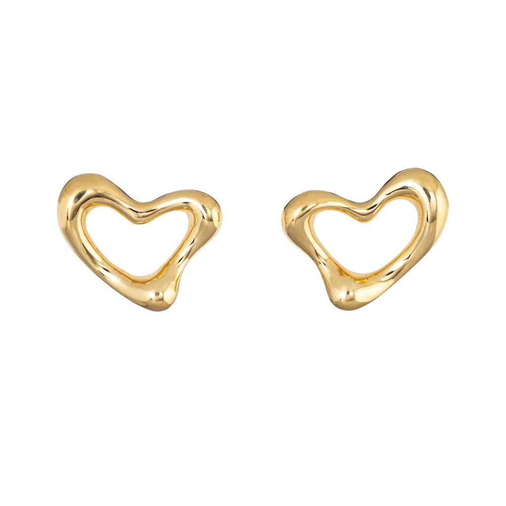 Elegant pair of estate Tiffany & Co open heart earrings crafted in 18k yellow gold.