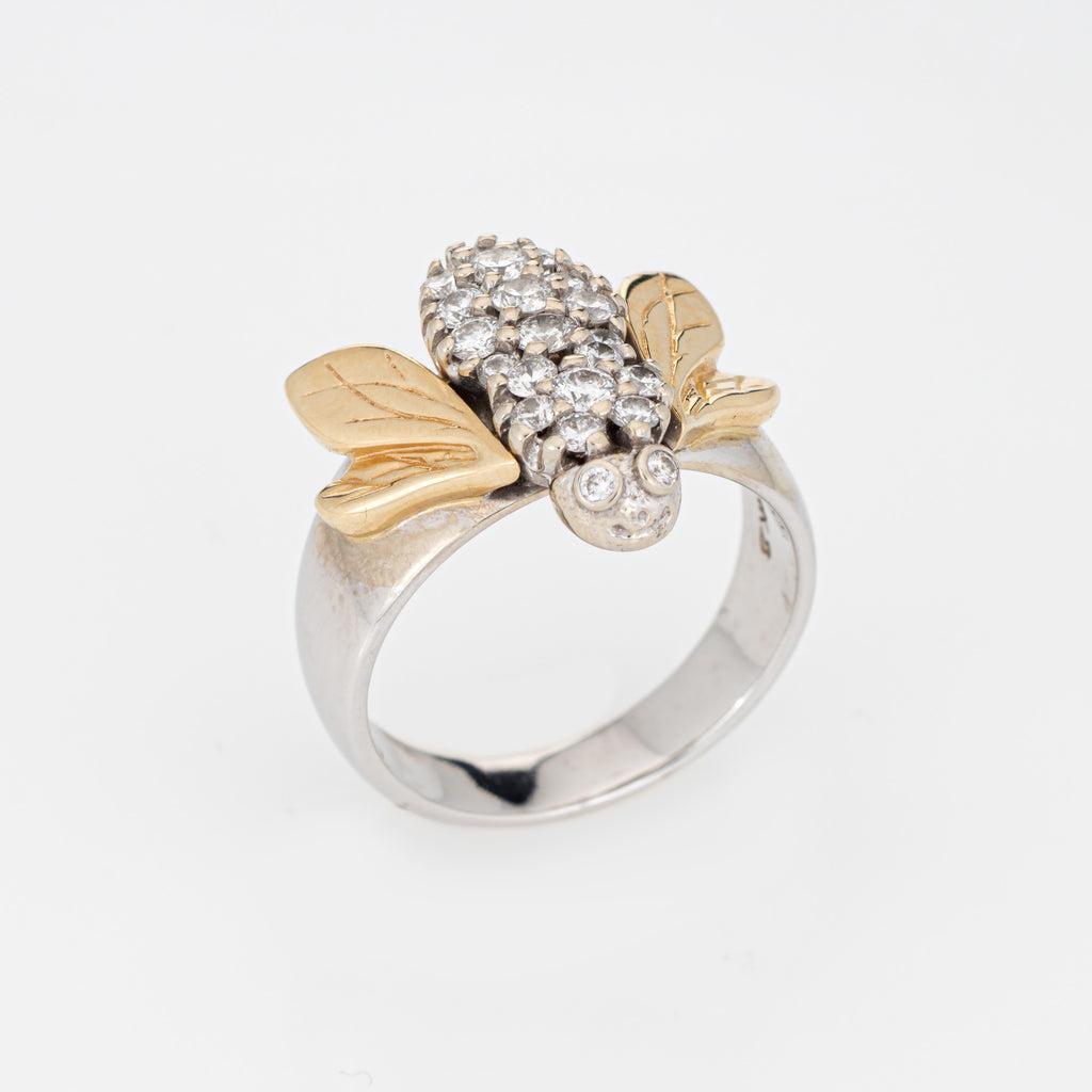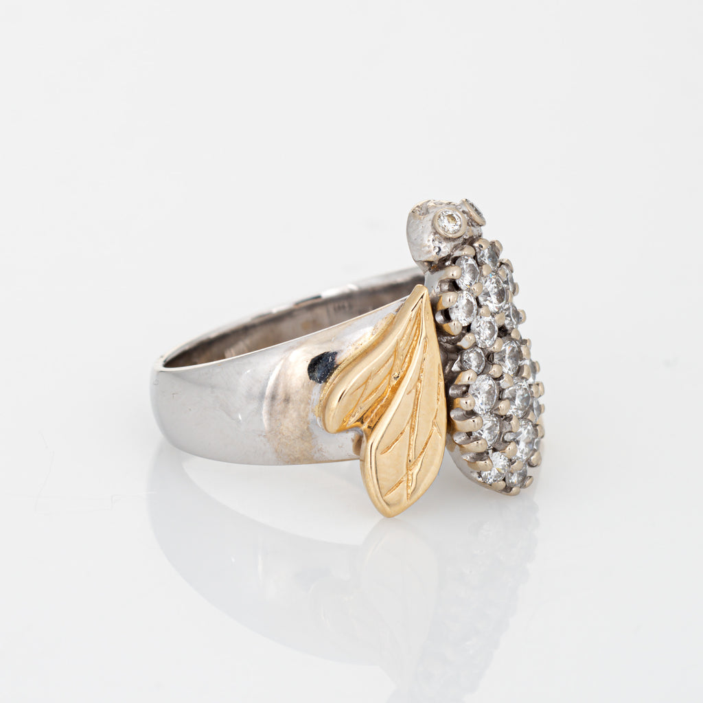 Diamond Bumble Bee Ring 14k Gold Two Tone Estate Fine Insect Jewelry Sz 7