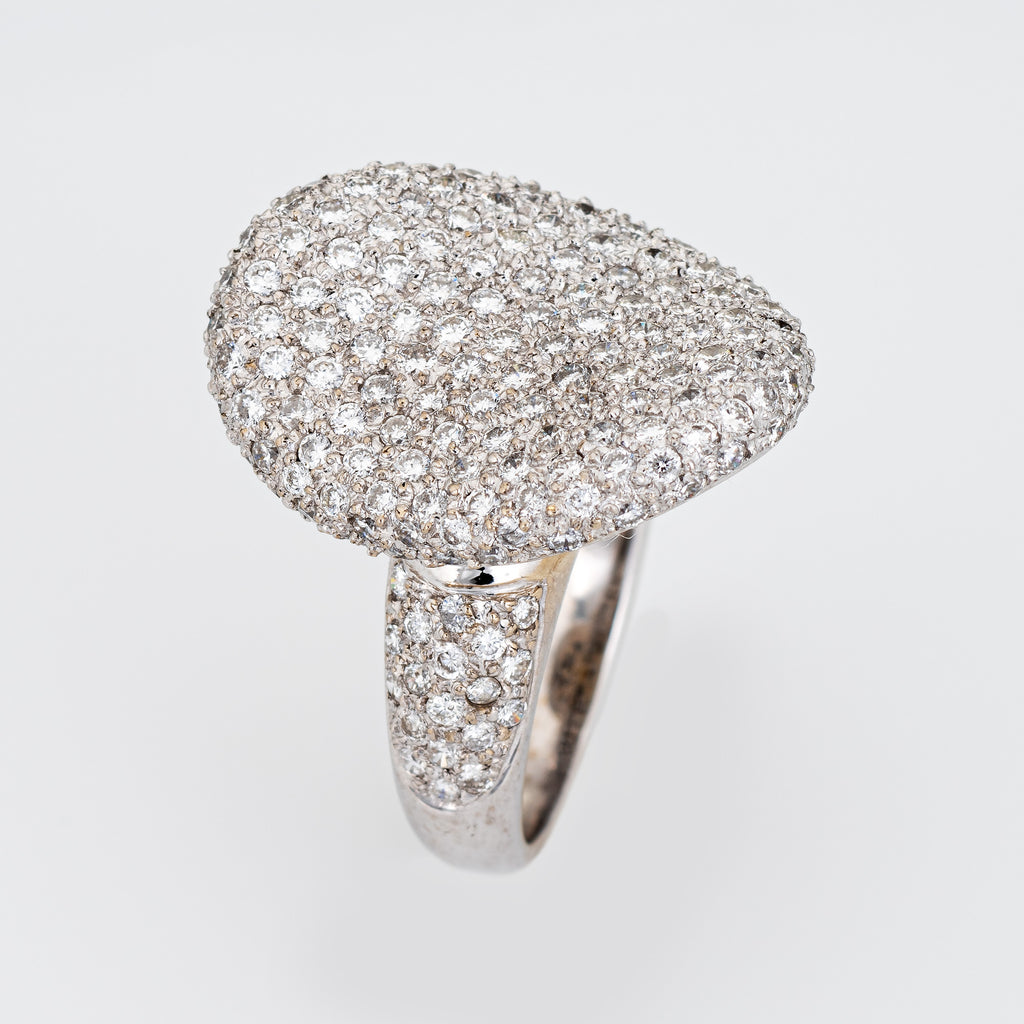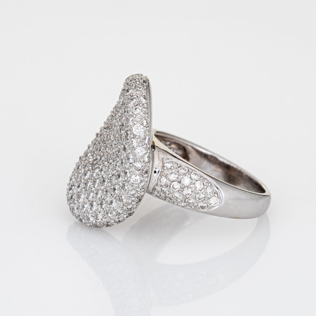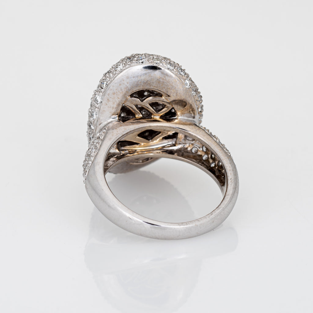 Finely detailed contemporary pave set diamond cocktail ring crafted in 14 karat white gold.