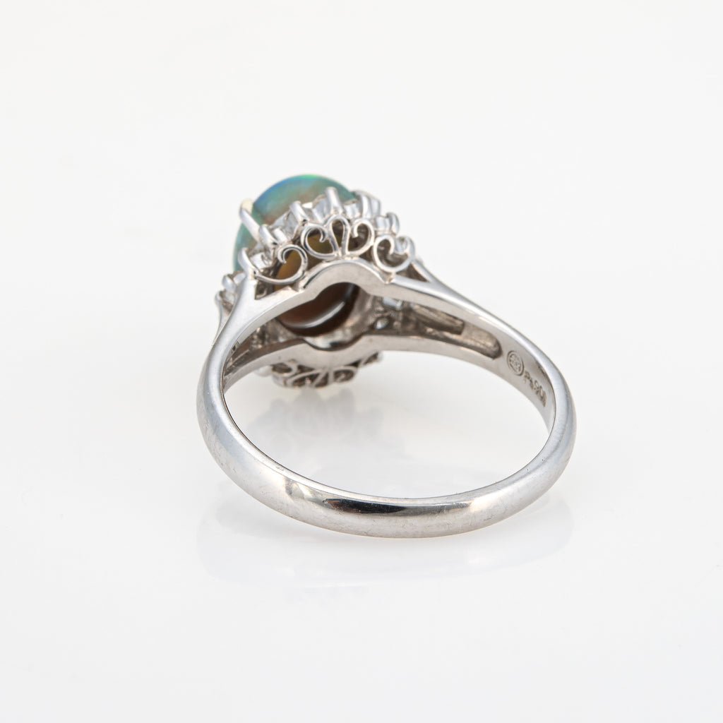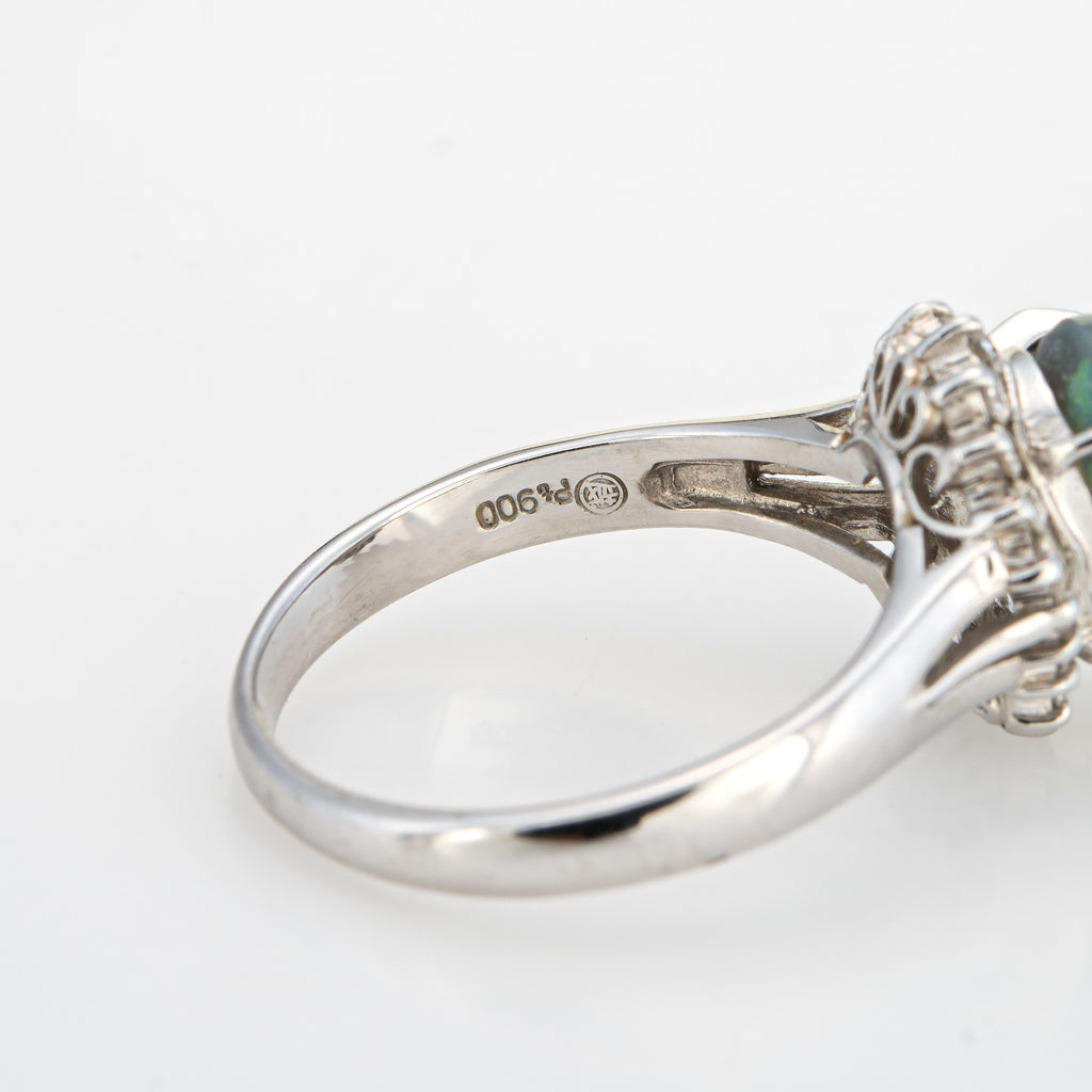 Stylish 1.62ct natural black opal & diamond cocktail ring crafted in platinum.