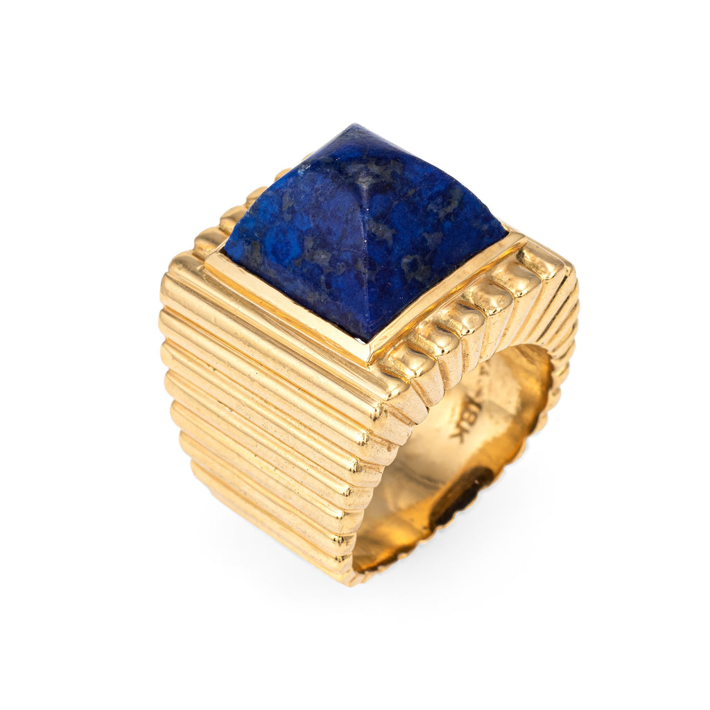 70s Tiffany & Co Sugarloaf Lapis Lazuli Ring 18k Yellow Gold Sz 5 Square Ridged
