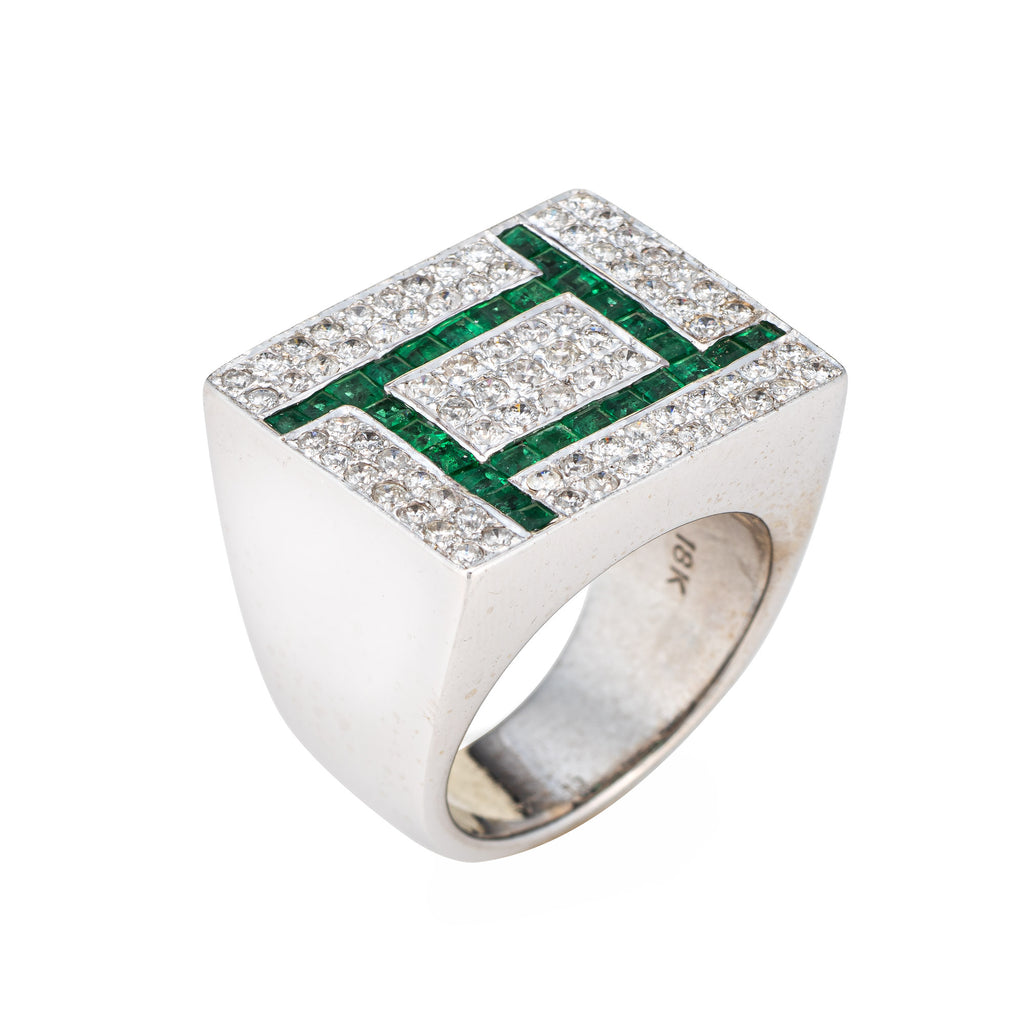 Stylish vintage diamond & emerald ring (circa 1980s) crafted in 18 karat white gold.