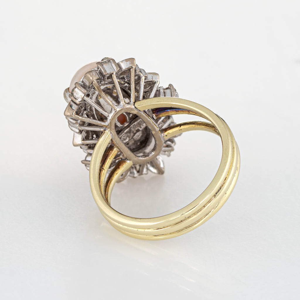 Stylish vintage coral & diamond cocktail ring (circa 1950s to 1960s) crafted in 14 karat yellow gold.