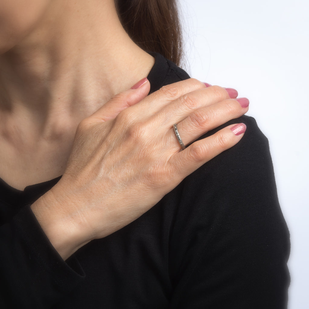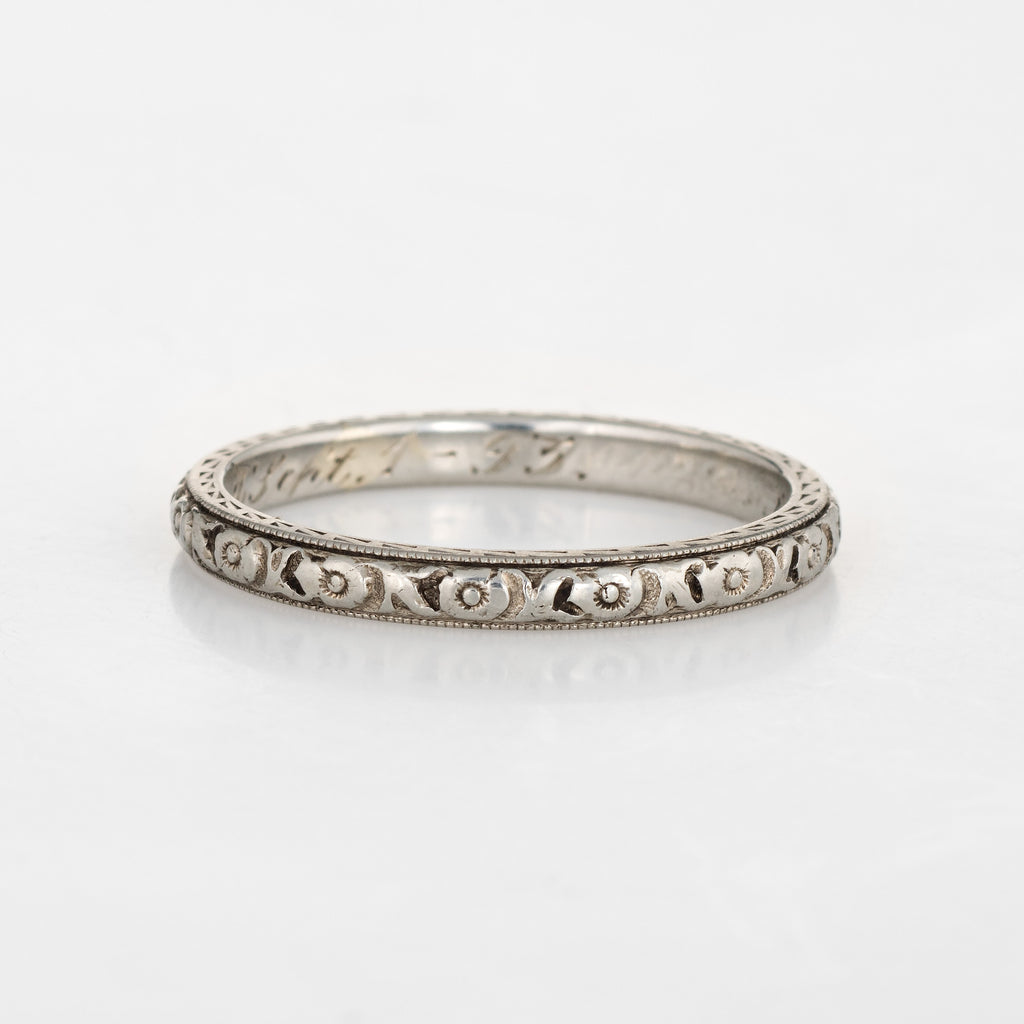 Elegant vintage Art Deco era band (circa 1920s to 1930s) crafted in 18k white gold.