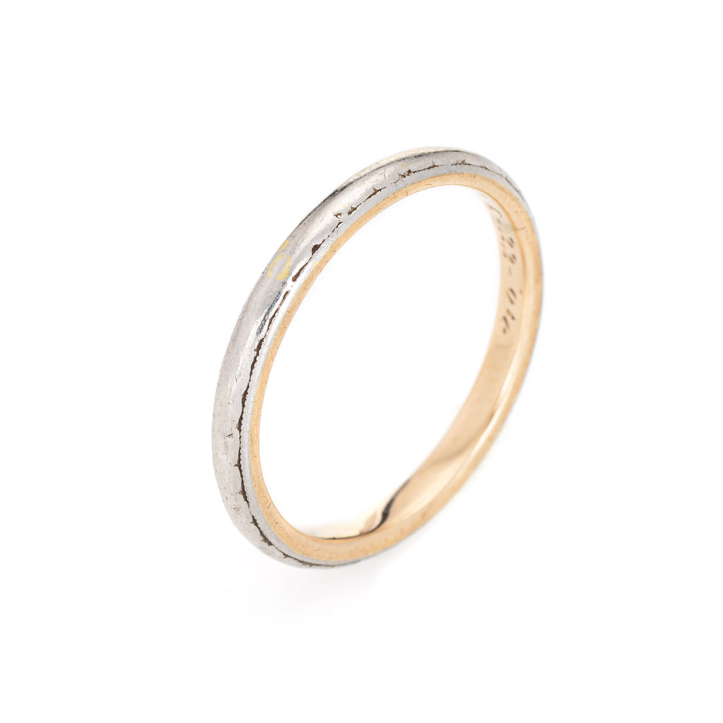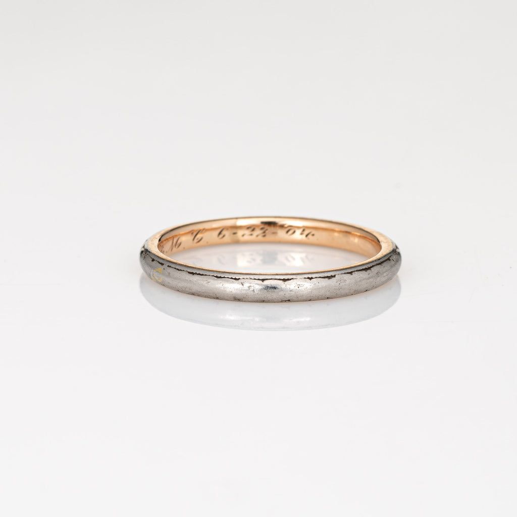 Elegant antique Edwardian wedding band (circa 1904) crafted in 14k yellow gold and platinum.