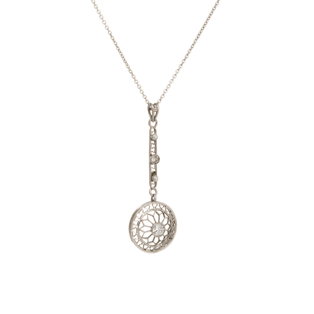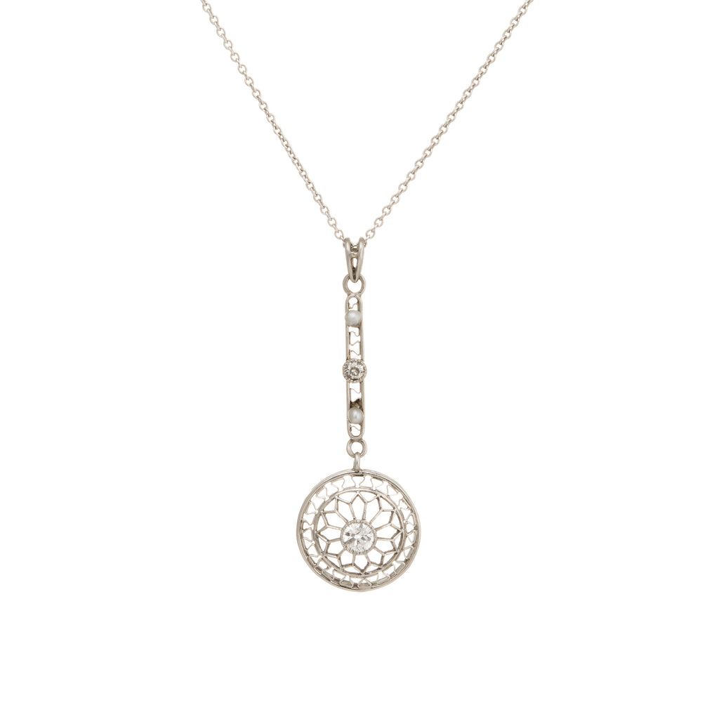 Antique Edwardian Diamond Pendant Necklace Platinum Pearl 14k Gold Vintage Fine