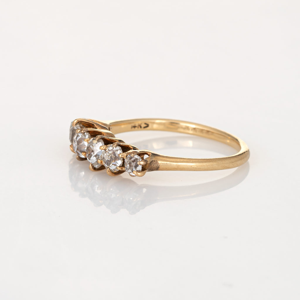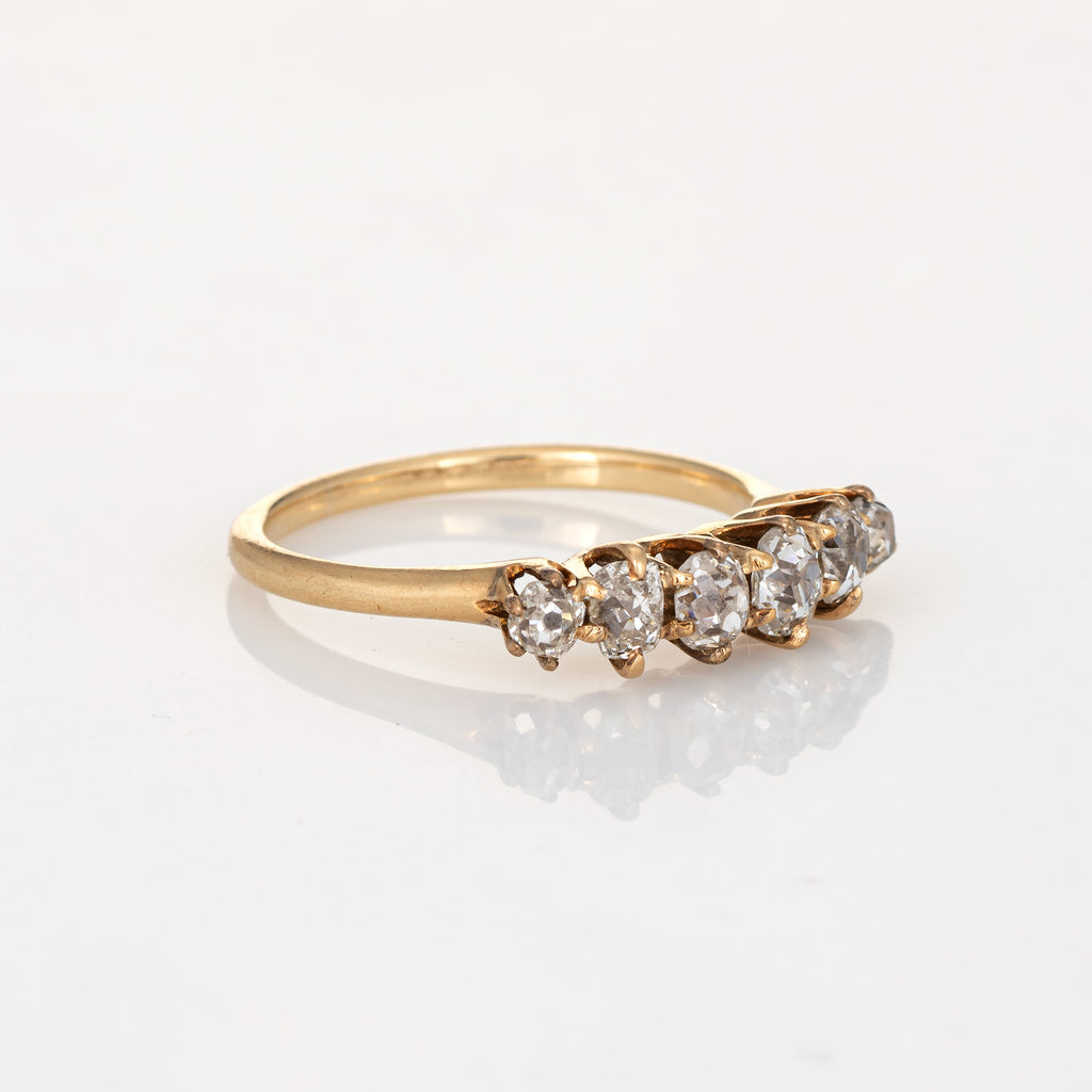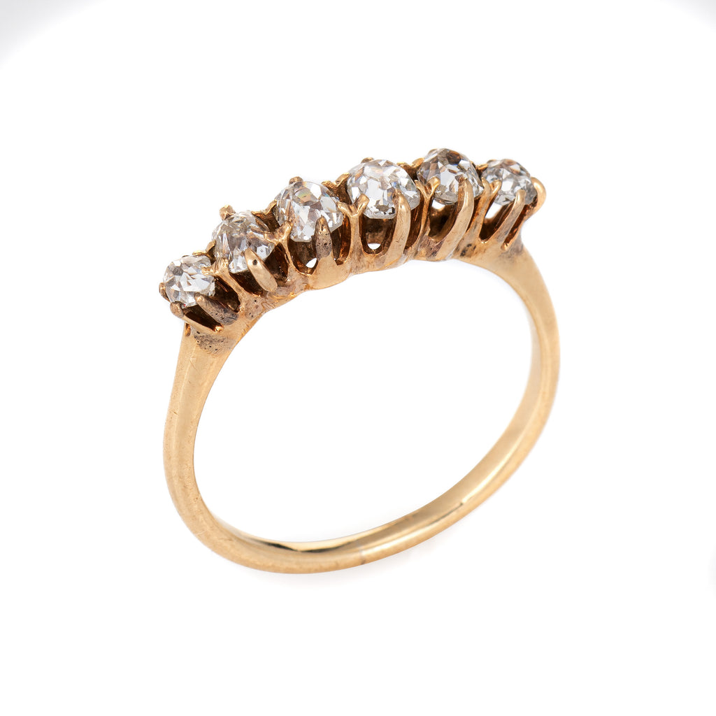 Antique Victorian Diamond Anniversary Ring 14k Yellow Gold Old Mine Six Stone 6