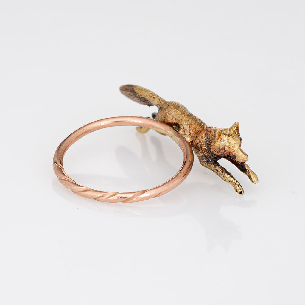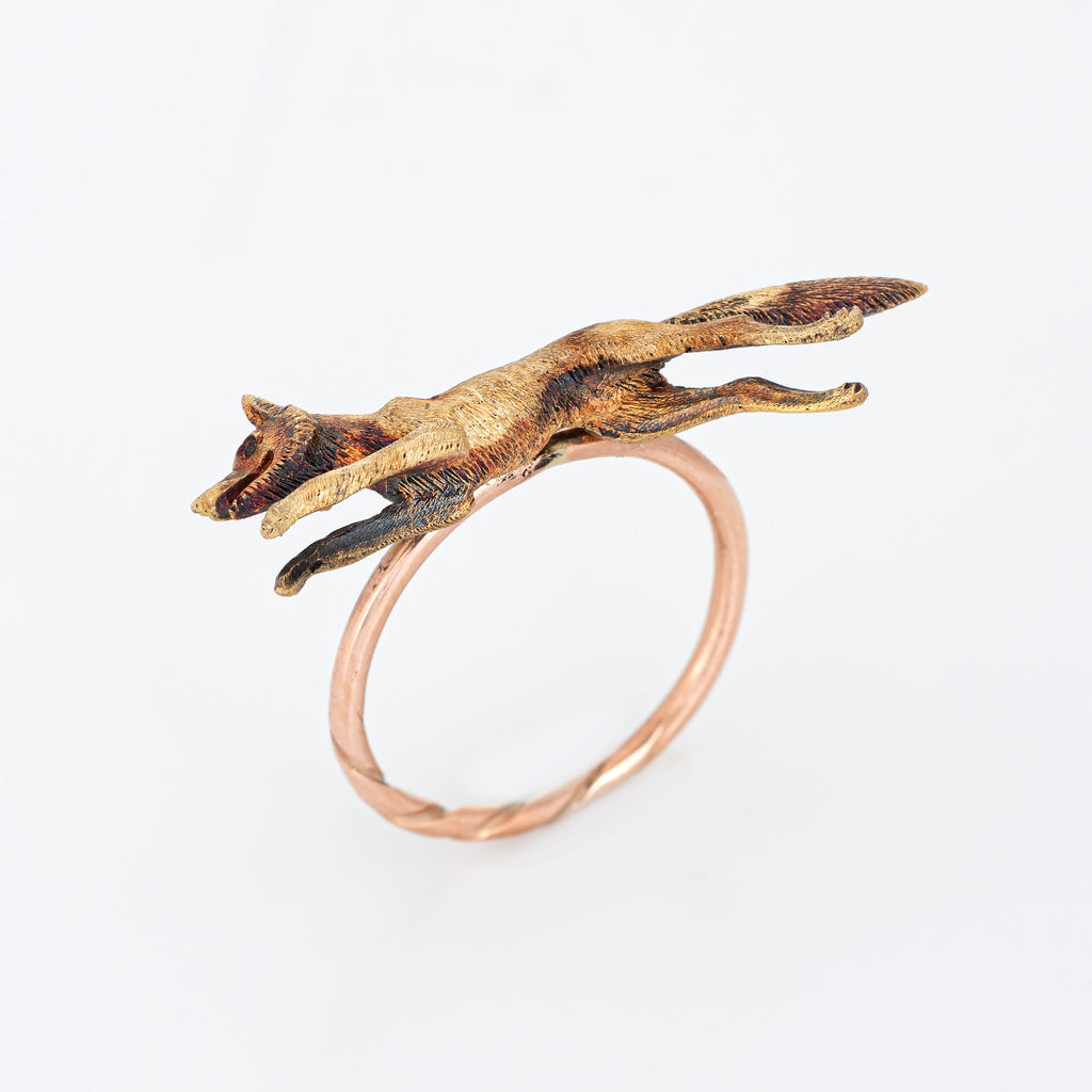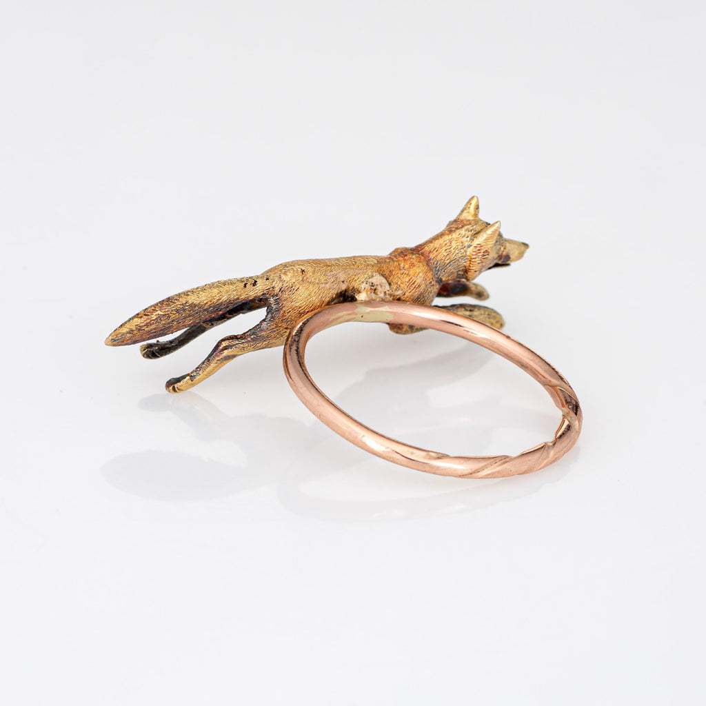 Antique Victorian Fox Conversion Ring 14k Yellow Gold Animal Jewelry 7.25