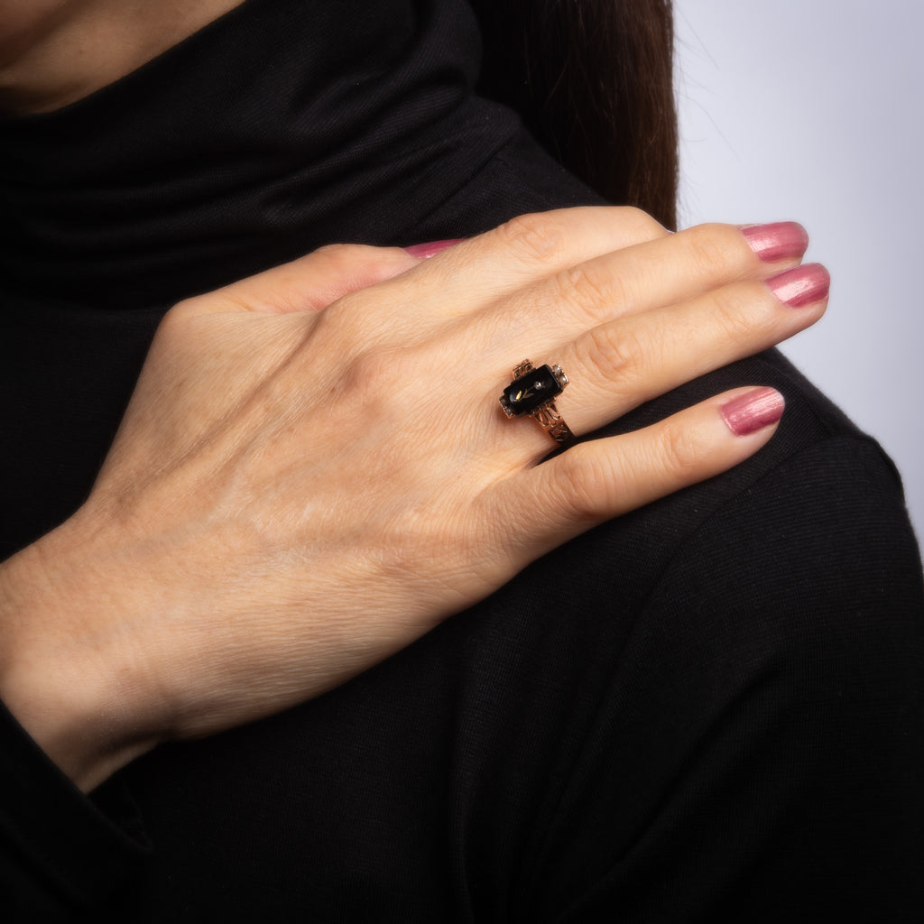 Metal & Hallmark: 10 karat rose gold. The ring is not hallmarked though it has tested positive for 10k gold.