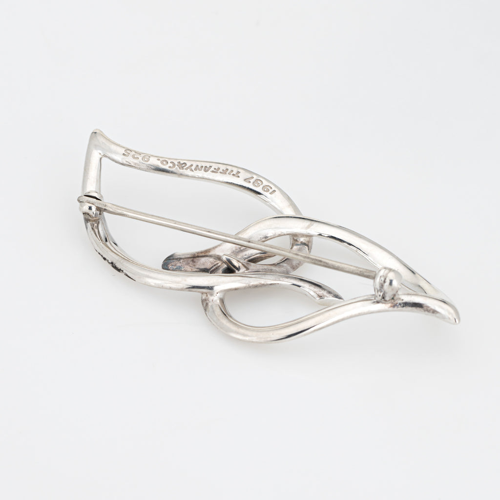 c1987 Tiffany & Co Two Leaf Brooch Sterling Silver Vintage Fine Signed Jewelry