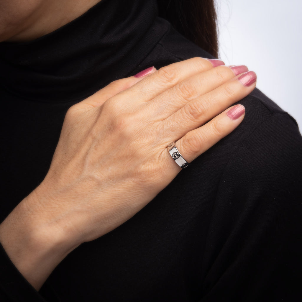 Size & Measurements: The ring is a size 48 (US size 4 1/2). The band measures 5.5mm wide (0.21 inches), rising 1.5mm from the finger.