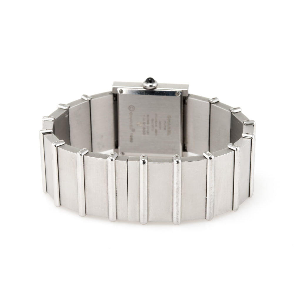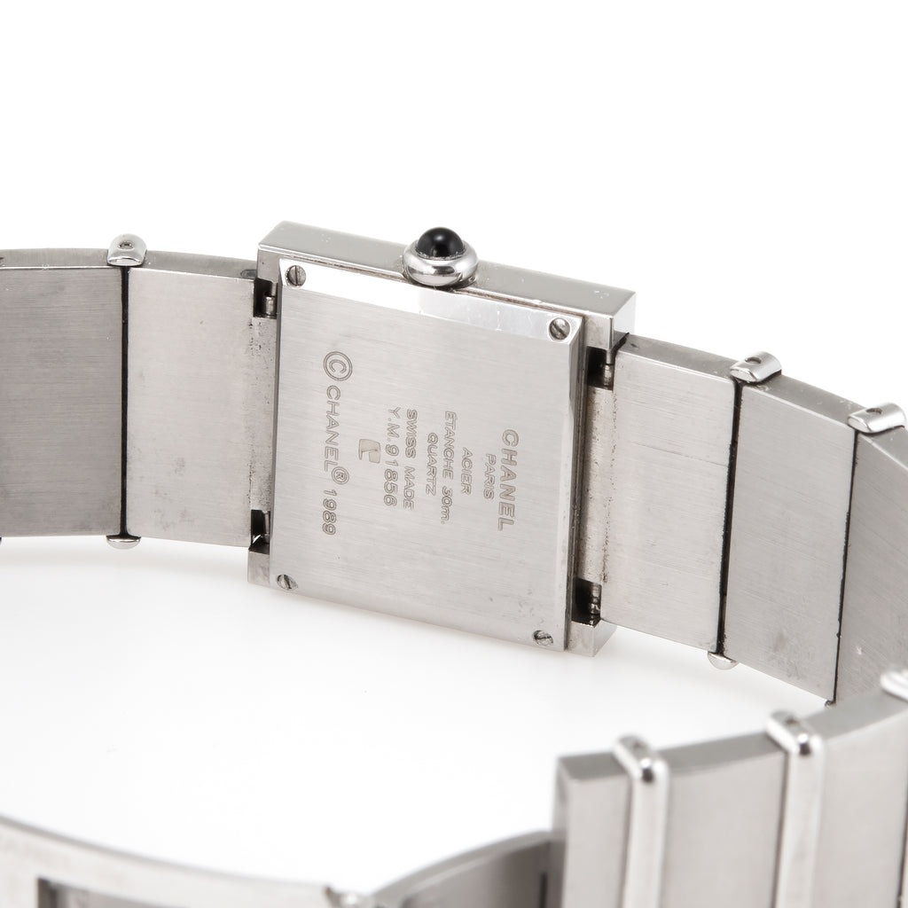 Metal & Hallmark:  Stainless steel. The watch is marked "Chanel" in addition to the model number and year (1989).