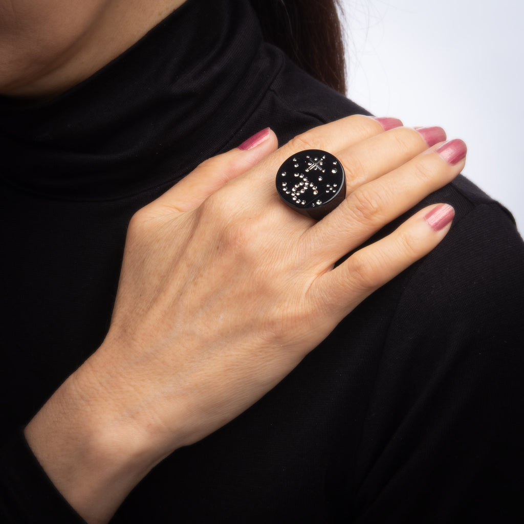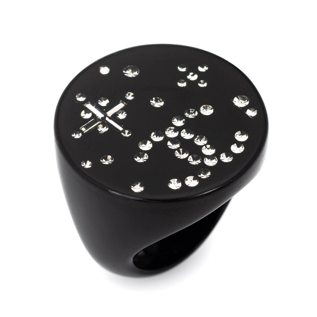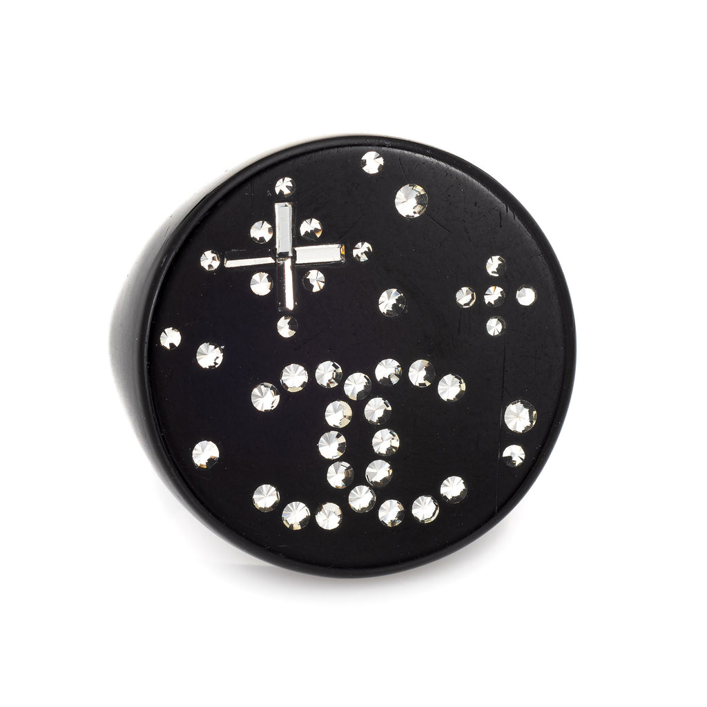 The round black resin ring features rhinestone crystals set in a star pattern with the CC logo to the base.