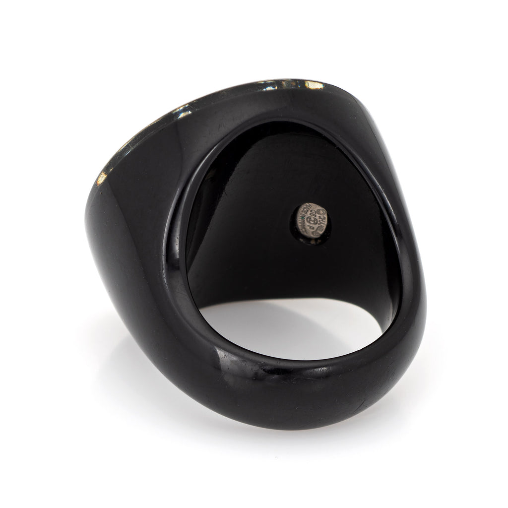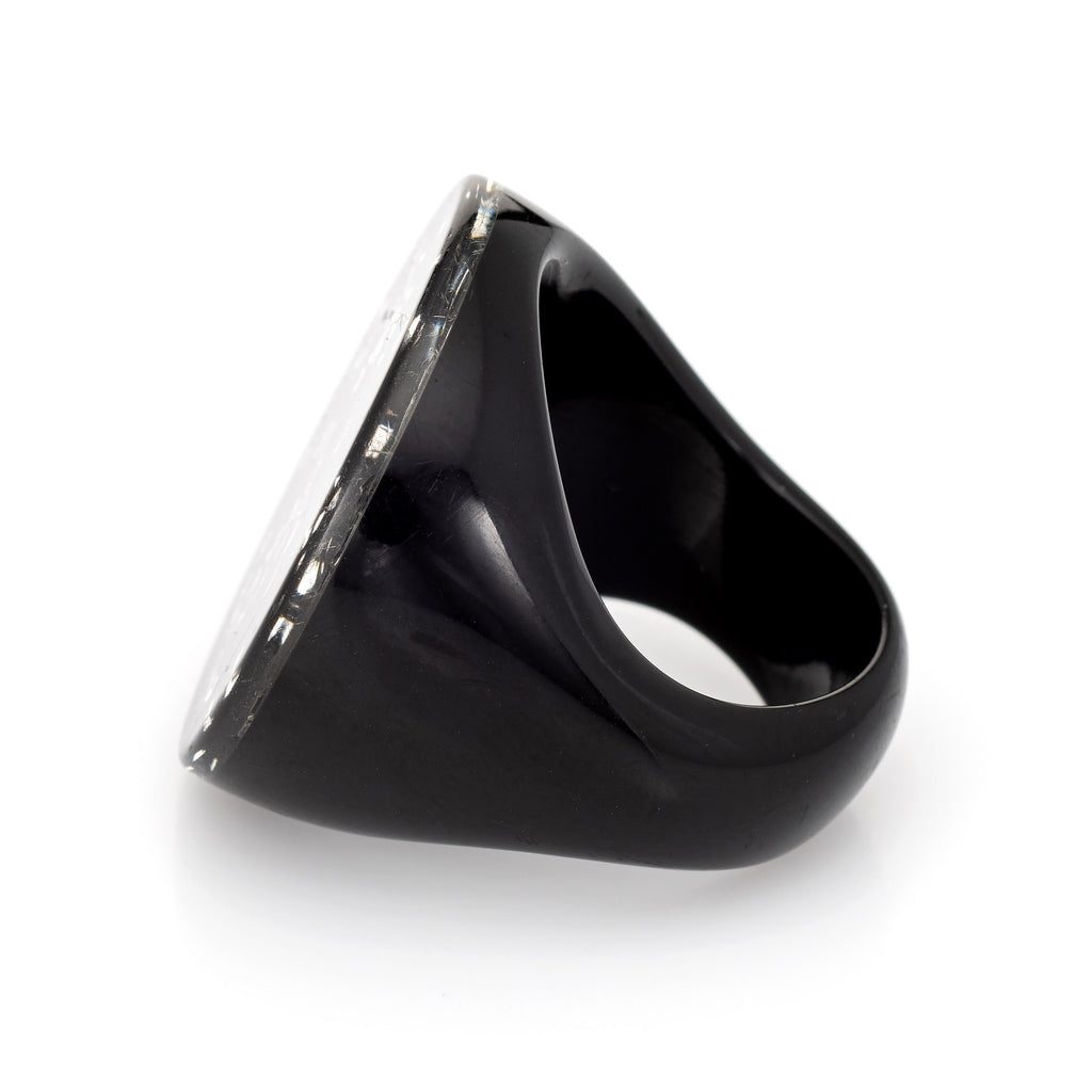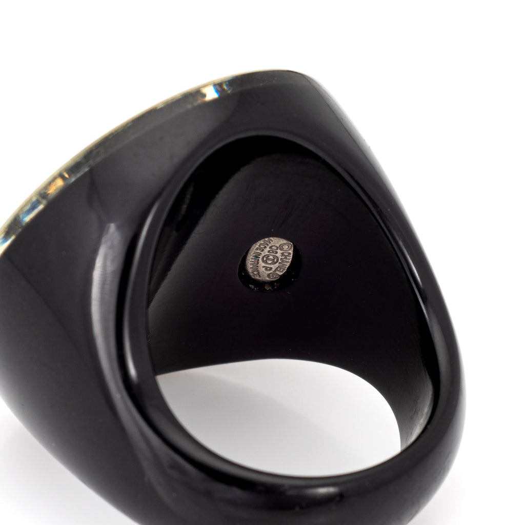 The round black resin ring features rhinestone crystals set in a star pattern with the CC logo to the base.
