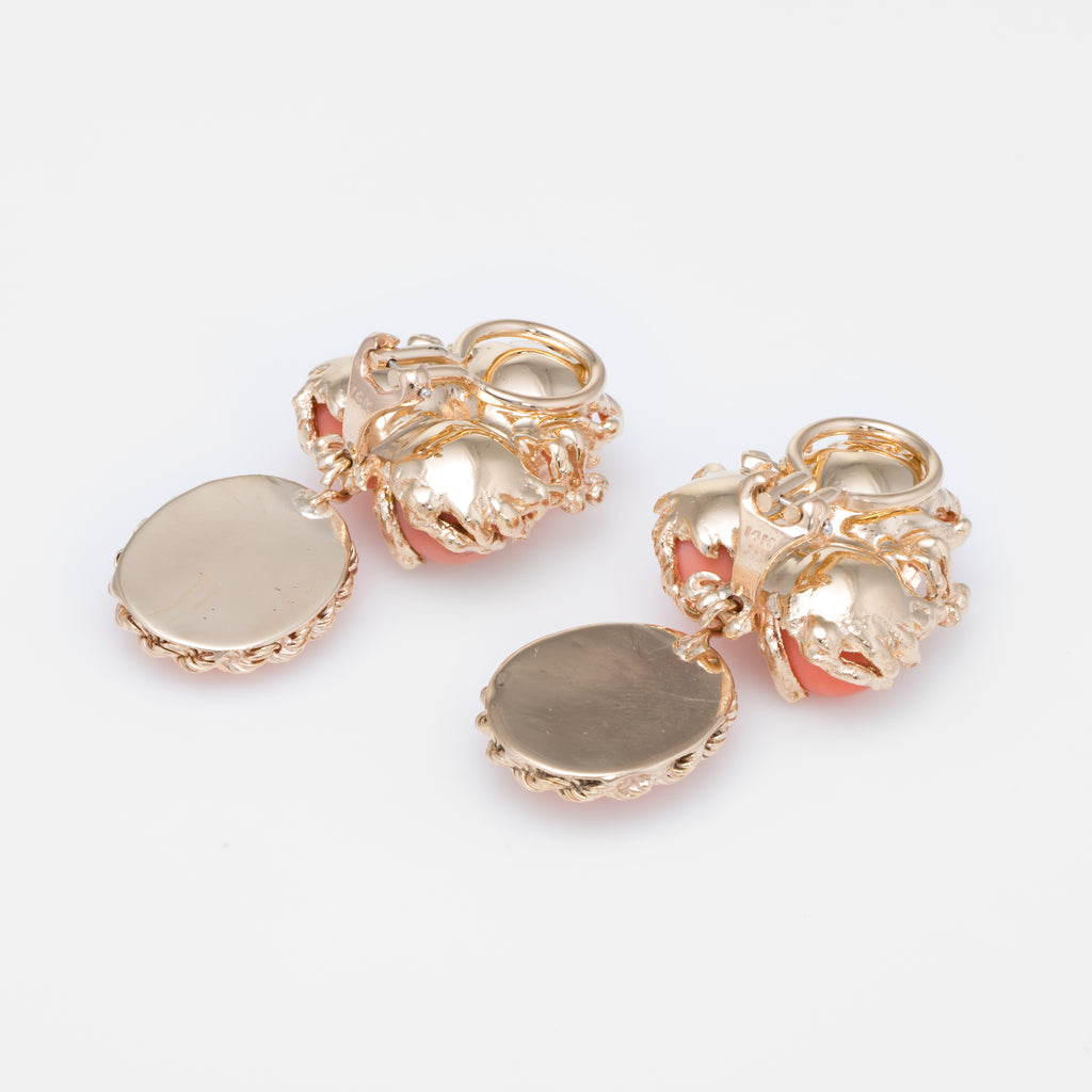 Metal & Hallmark: 14 karat yellow gold. The earrings are hallmarked "14k".