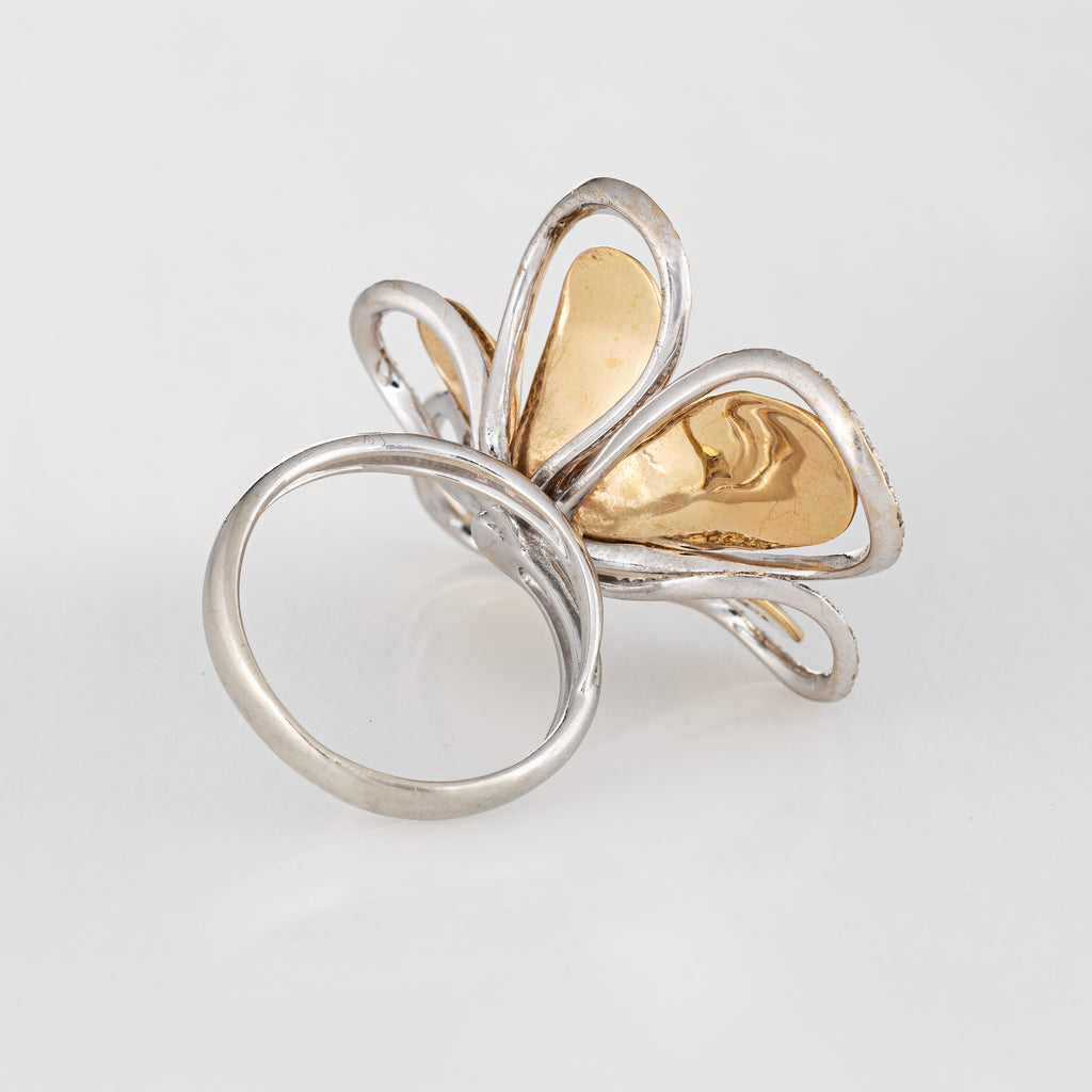 Stylish Effy 'D'Oro" large diamond flower ring crafted in 14 karat yellow & white gold.
