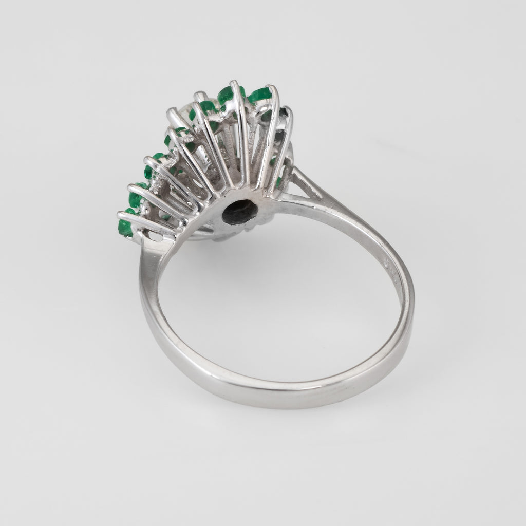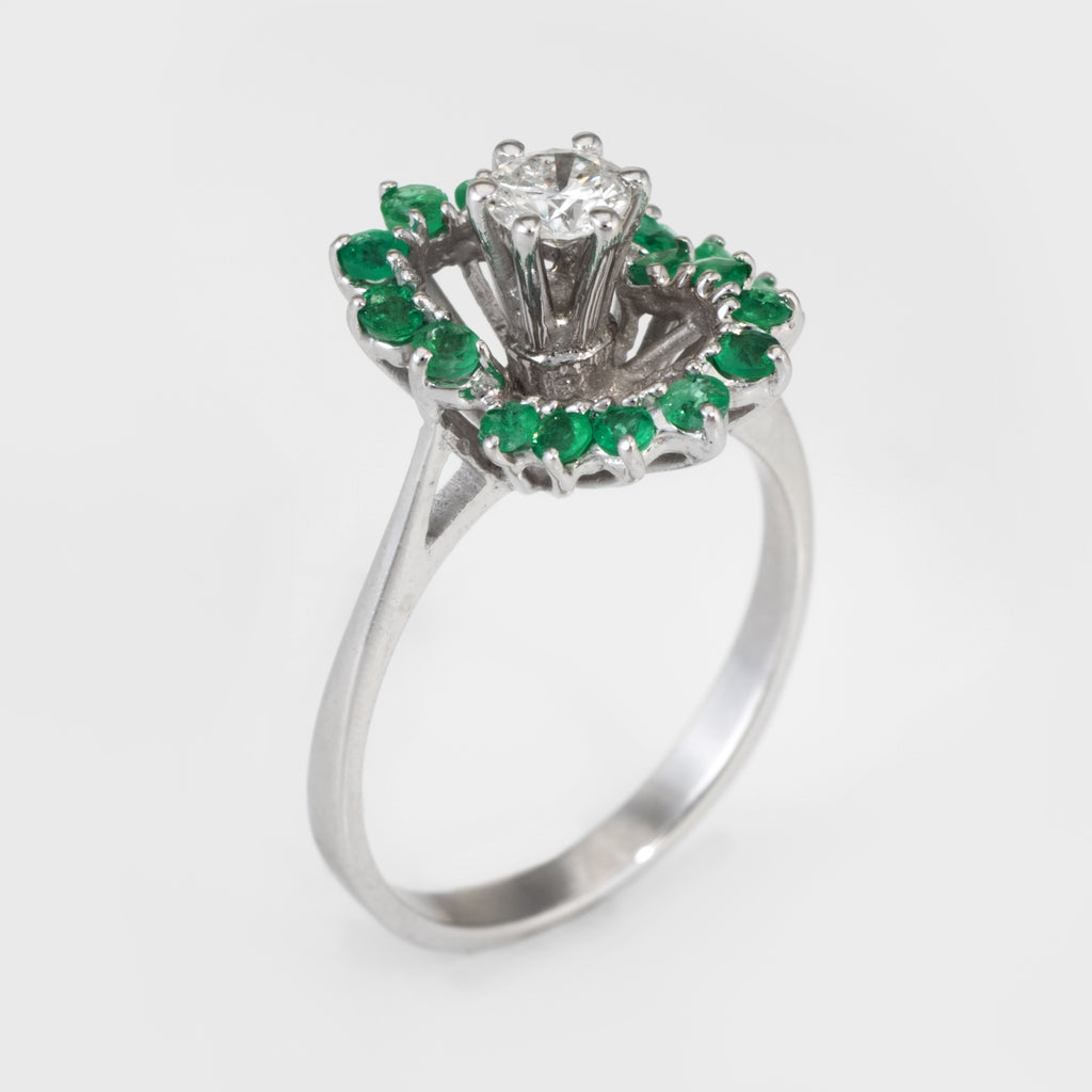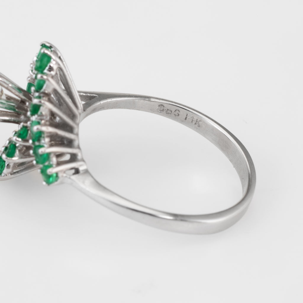 Emerald Diamond Cocktail Ring Vintage 14k White Gold Estate Fine Jewelry 6.5