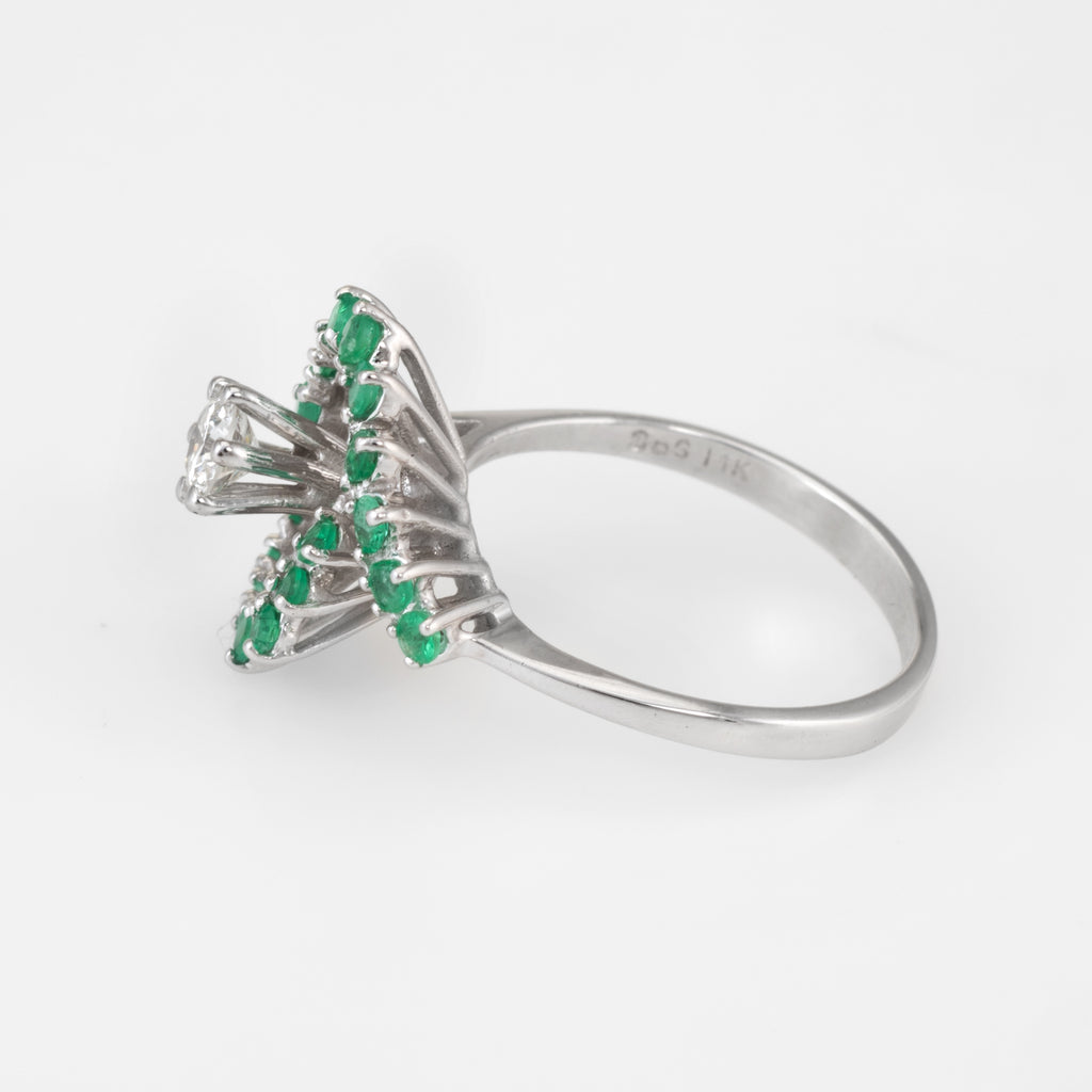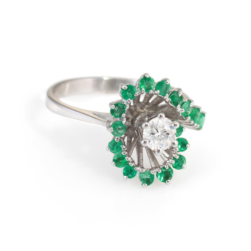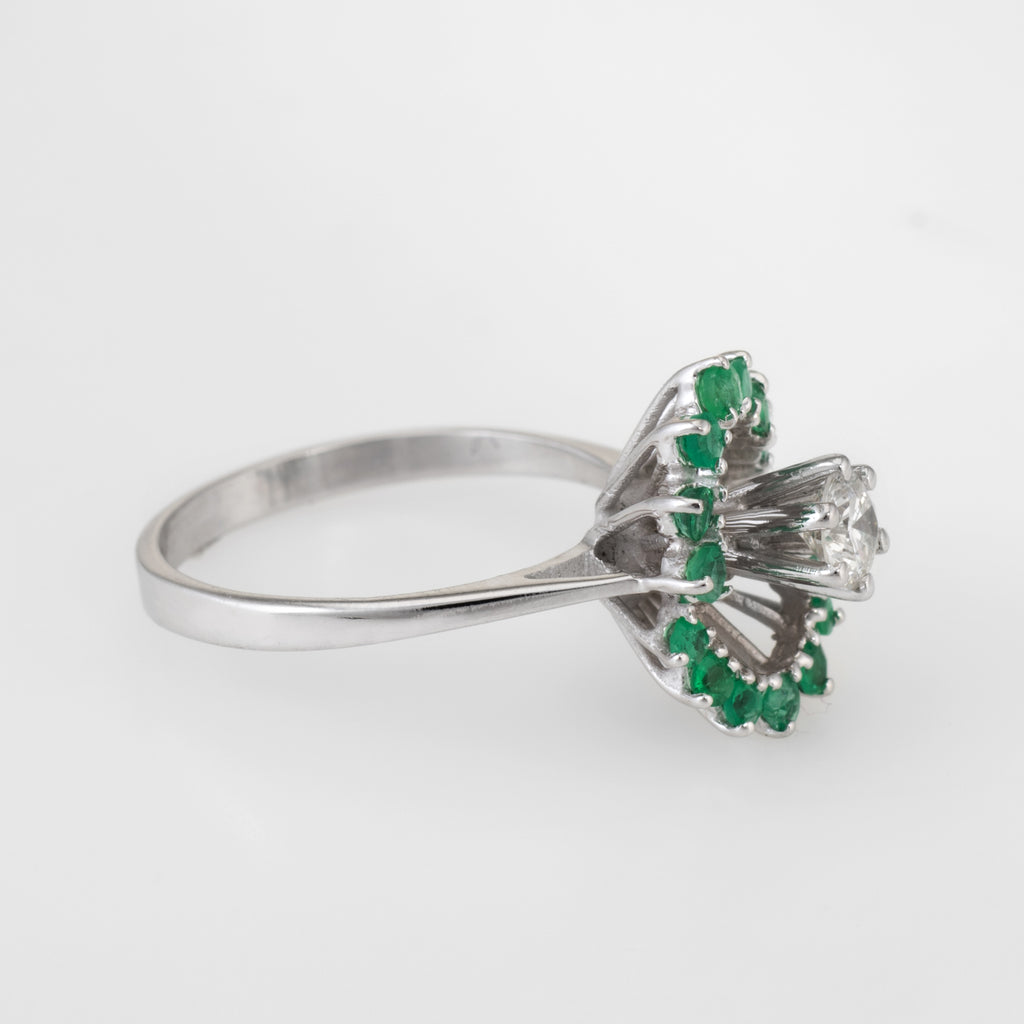Emerald Diamond Cocktail Ring Vintage 14k White Gold Estate Fine Jewelry 6.5