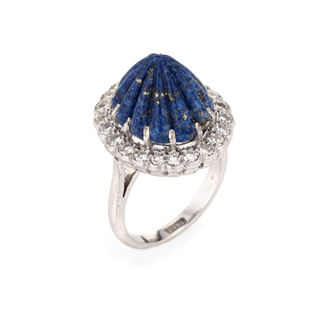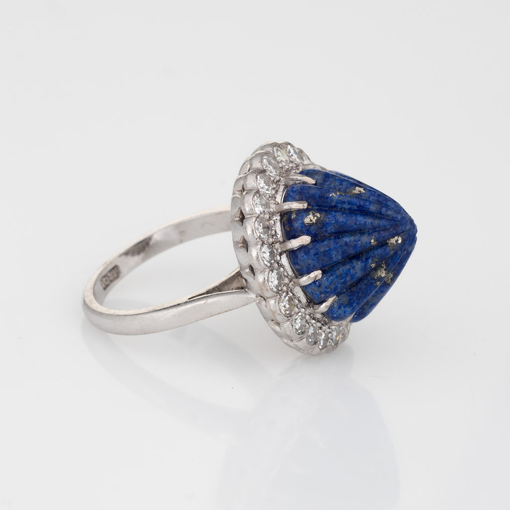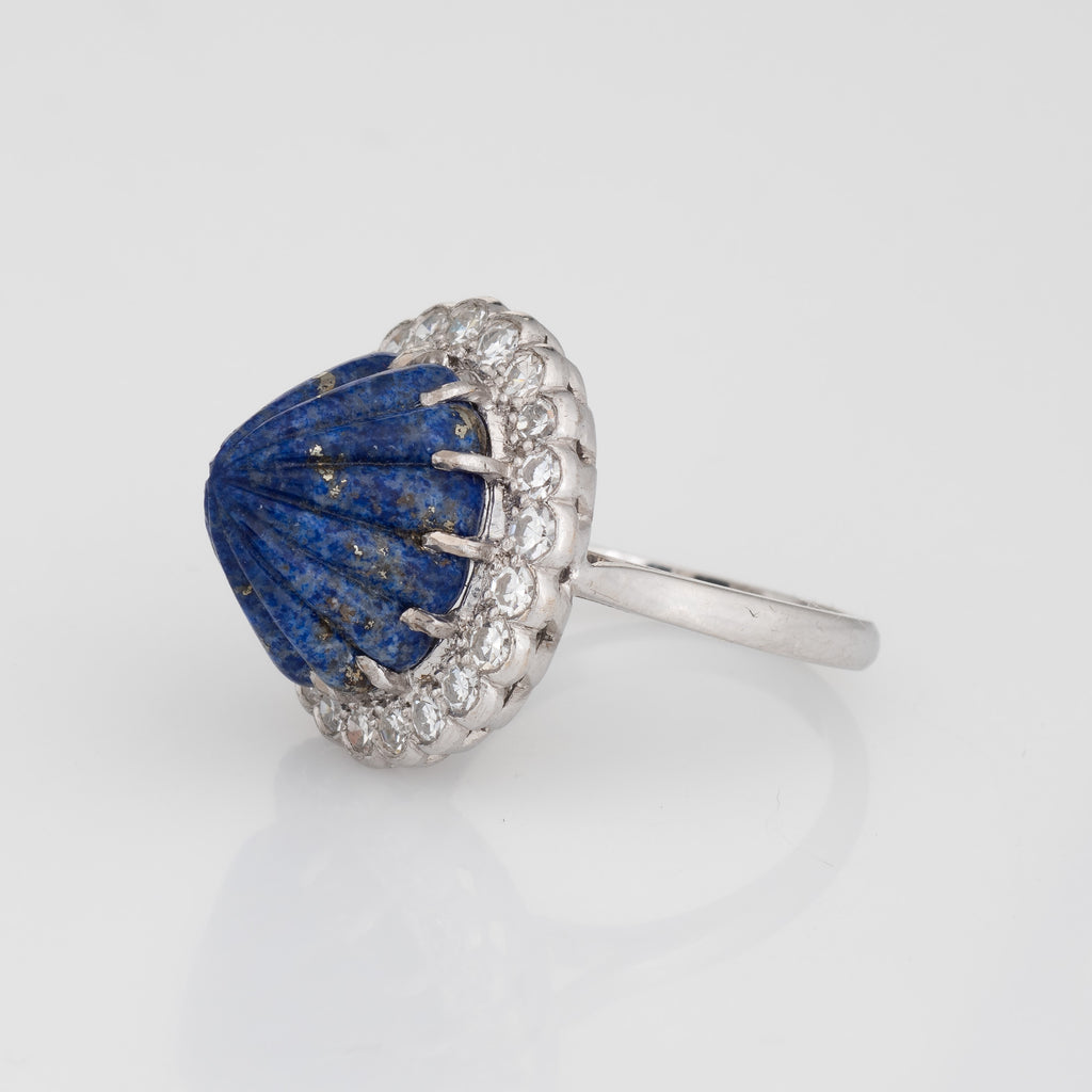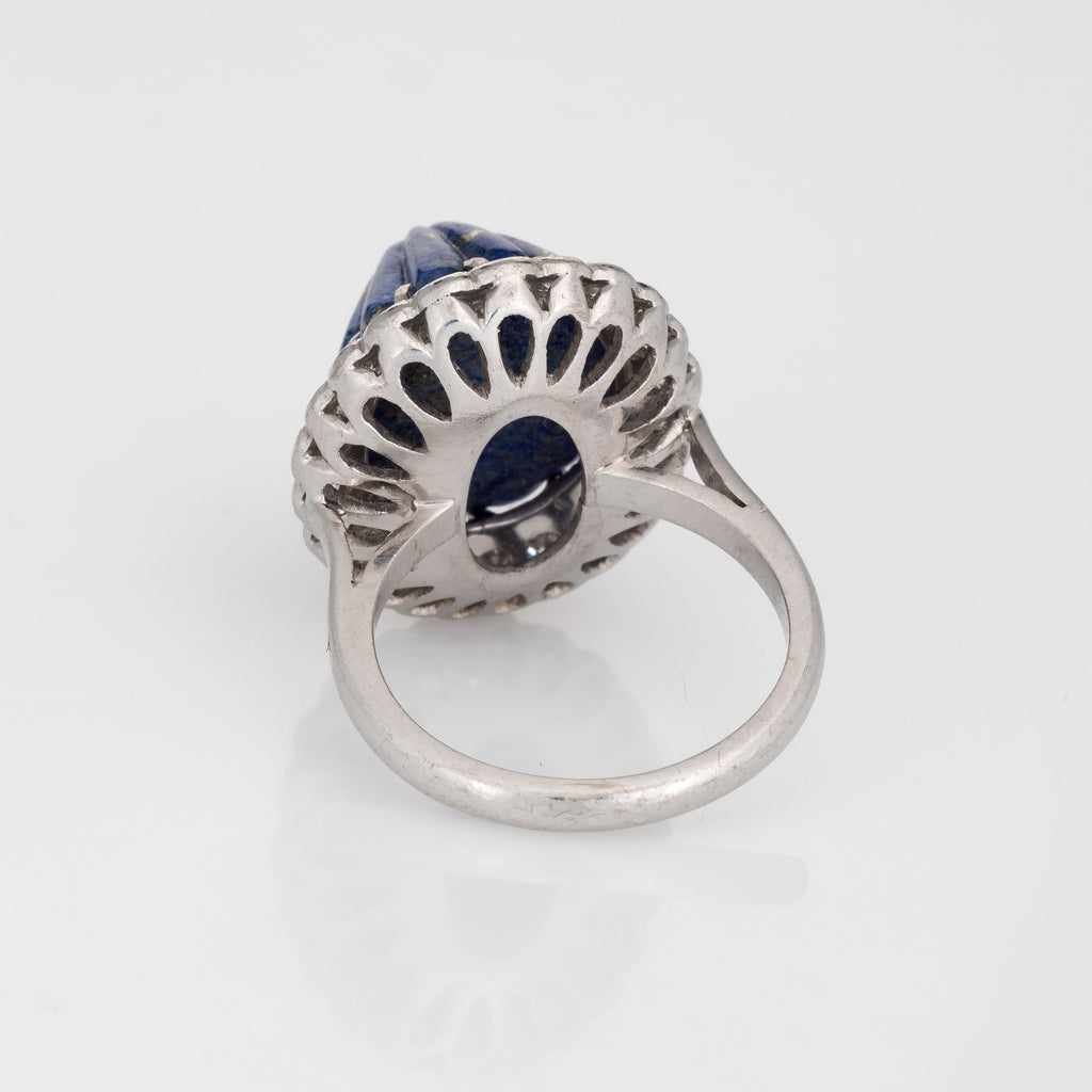 Stylish vintage fluted lapis lazuli & diamond cocktail ring (circa 1950s to 1960s) crafted in 18 karat white gold.