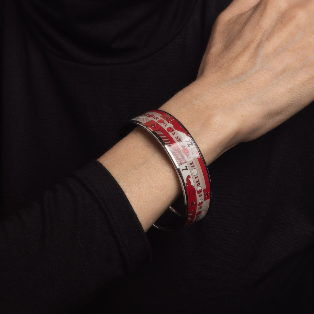 Hermes Enamel Bangle Bracelet Wide 65 GM Moon Phase Red White Pattern 2006