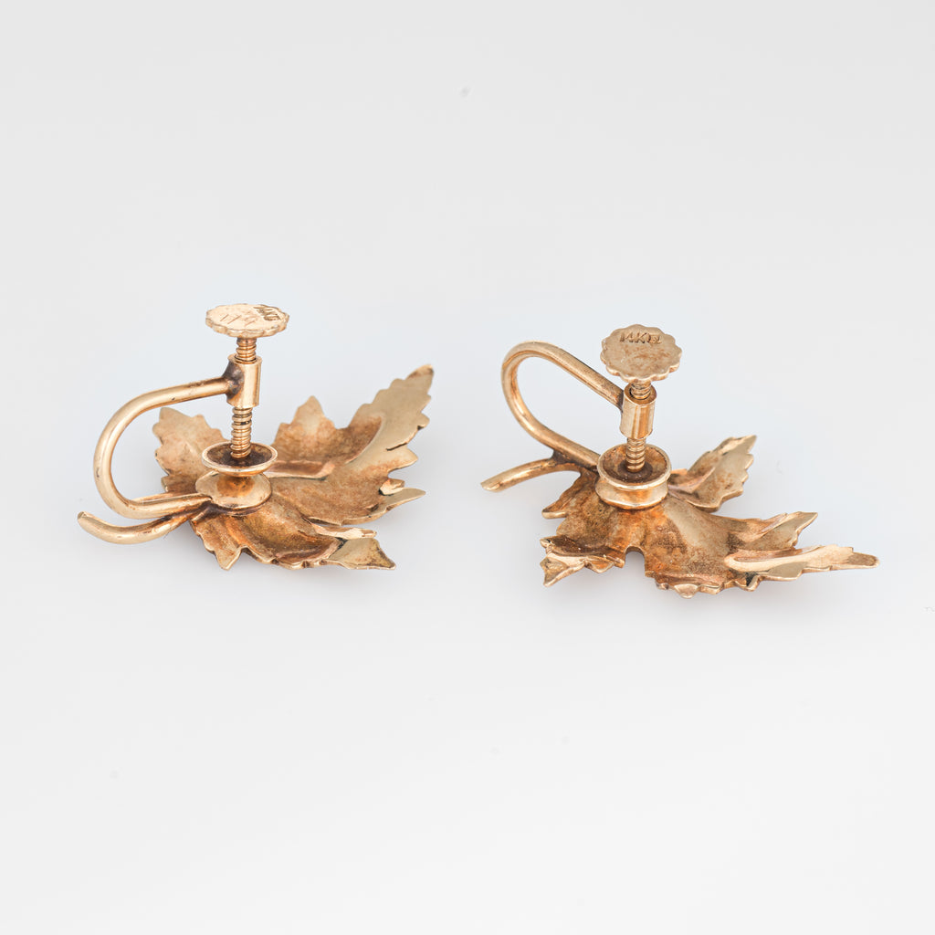 Maple Leaf Earrings Vintage 14k Yellow Gold Screw Backings Estate Fine Jewelry