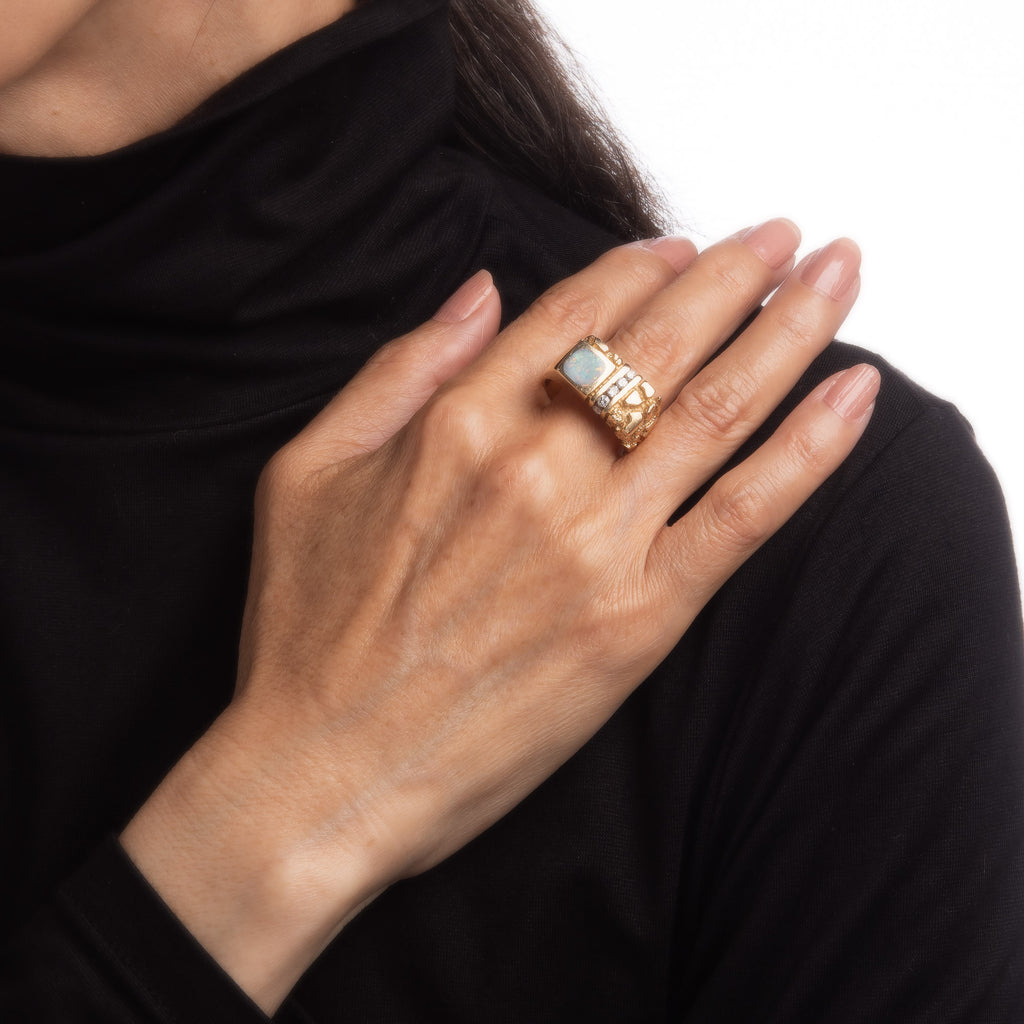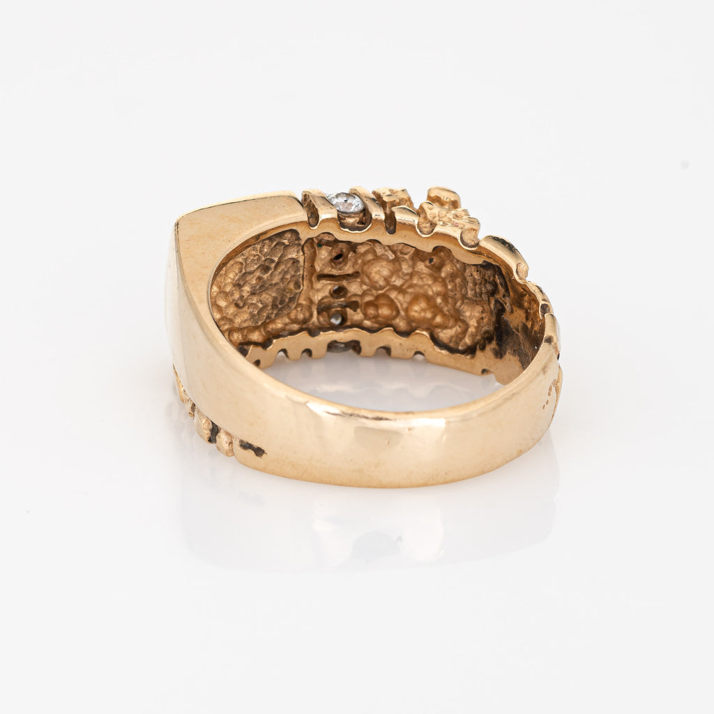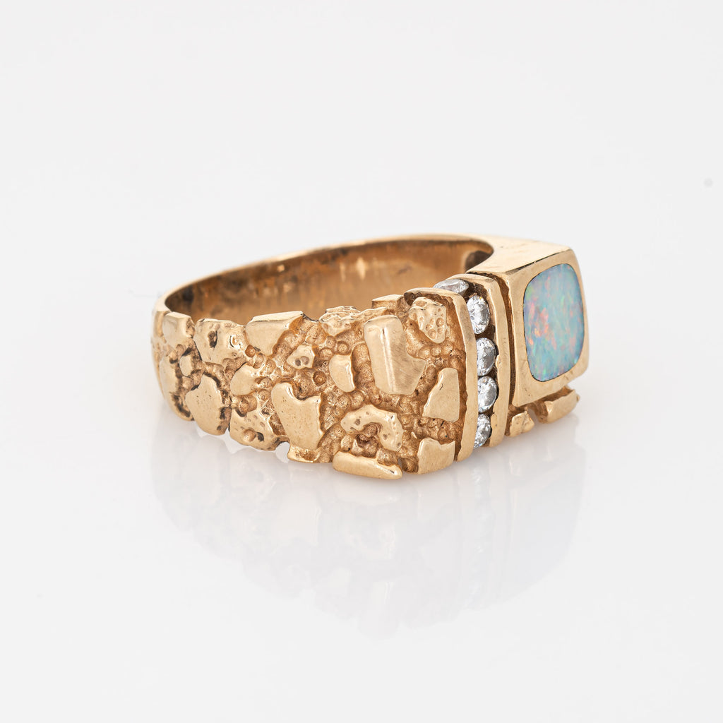 Stylish vintage opal & diamond nugget ring (circa 1970s) crafted in 14 karat yellow gold.