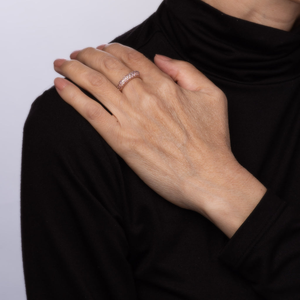 The unique square design highlights pave set pink sapphires. The ring is great worn alone or stacked. The low rise ring (3mm - 0.11 inches) sits comfortably on the finger.