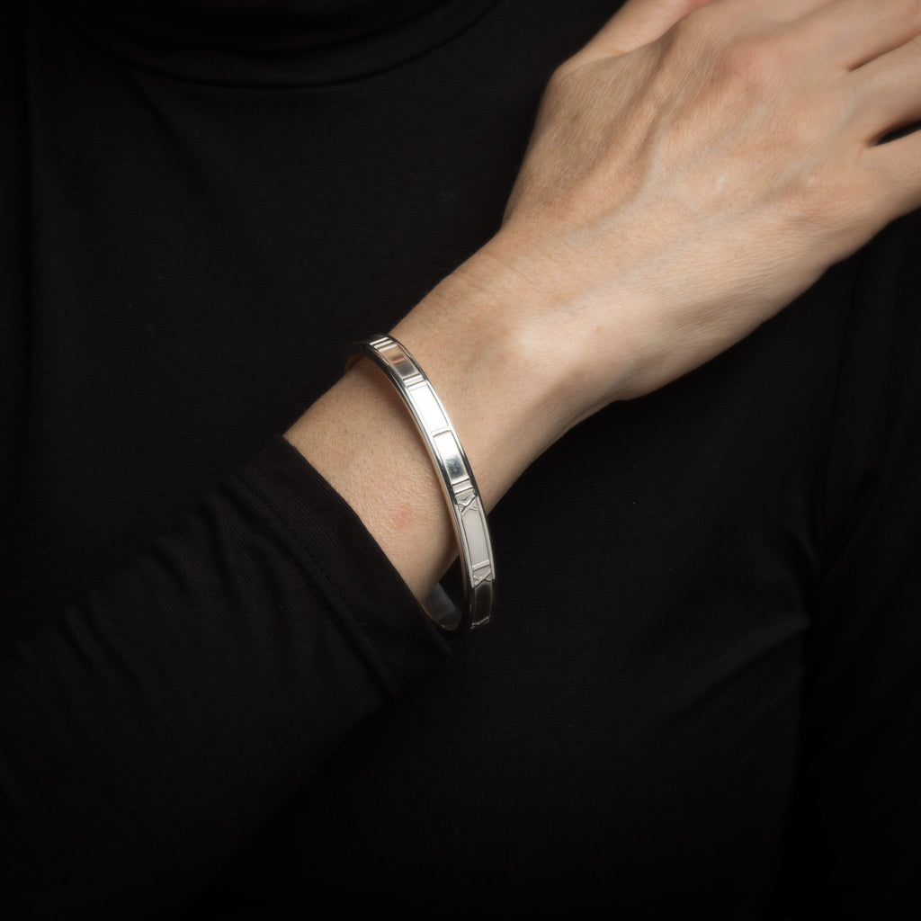 Tiffany & Co Atlas Cuff Bracelet 1995 Sterling Silver Vintage Roman Numeral 7"