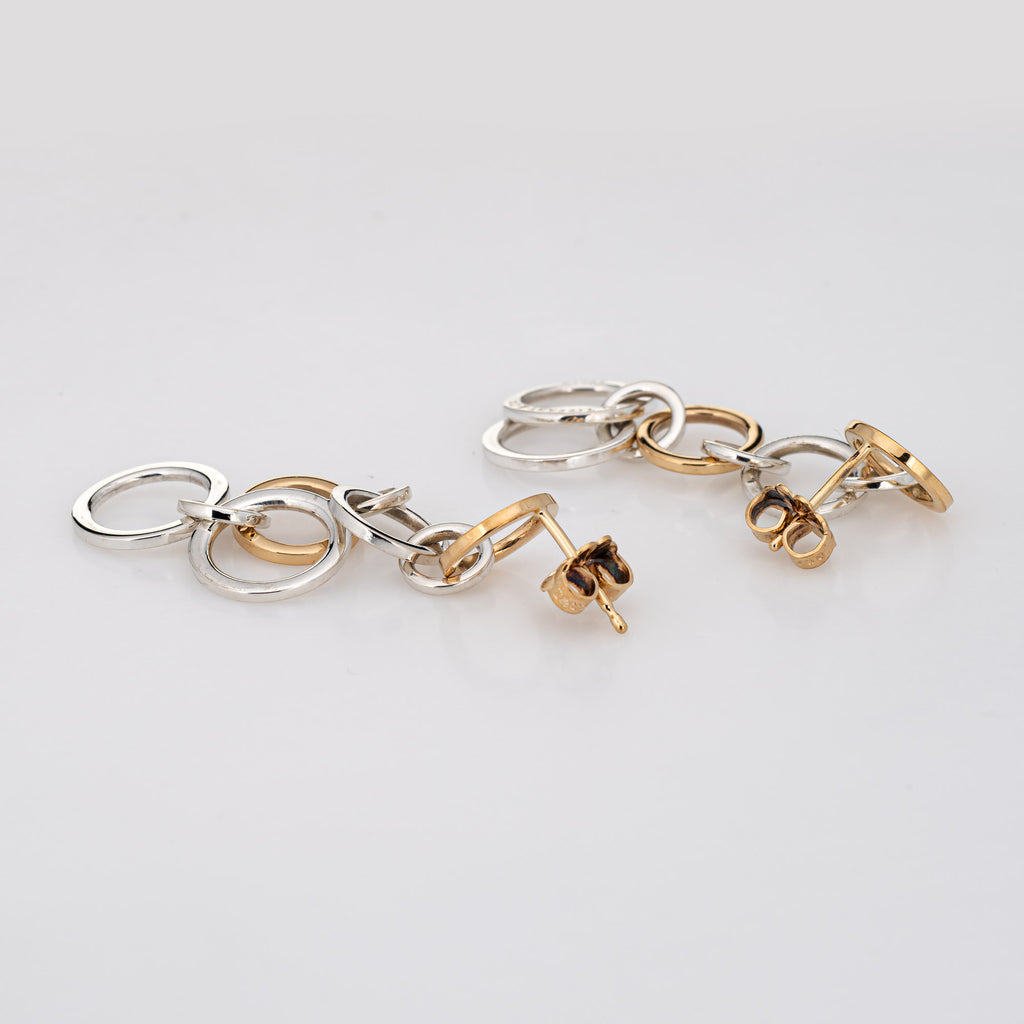 Stylish and finely detailed vintage Tiffany & Co circle link earrings, crafted in sterling silver & 18 karat yellow gold.
