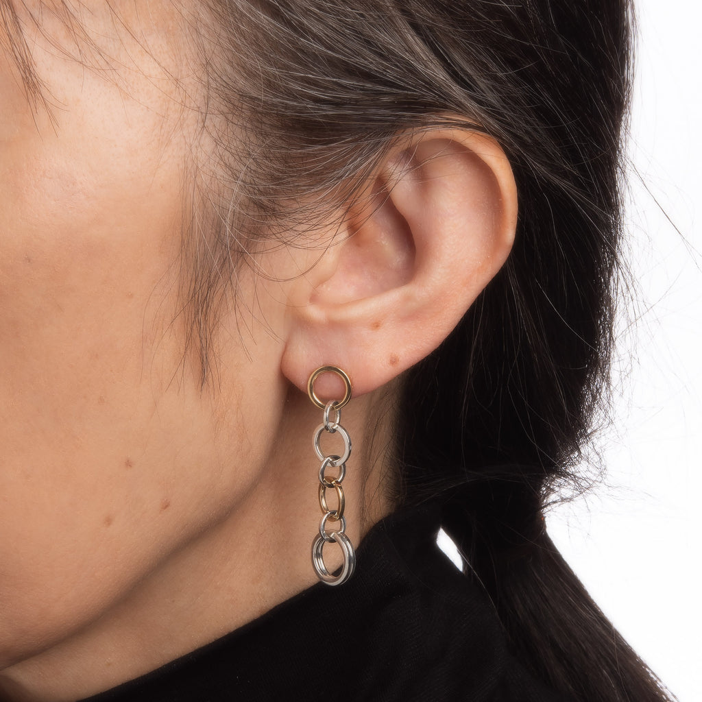 The earrings feature alternating links of sterling silver & 18k gold in various sizes (6.5mm to 11mm). Measuring 1 1/2 inches in length the earrings are great for day or evening wear. The matching bracelet is also available for sale. The earrings are retired and no longer made by Tiffany & Co.