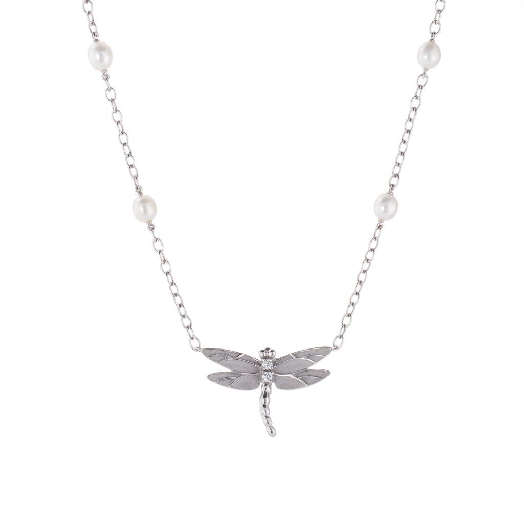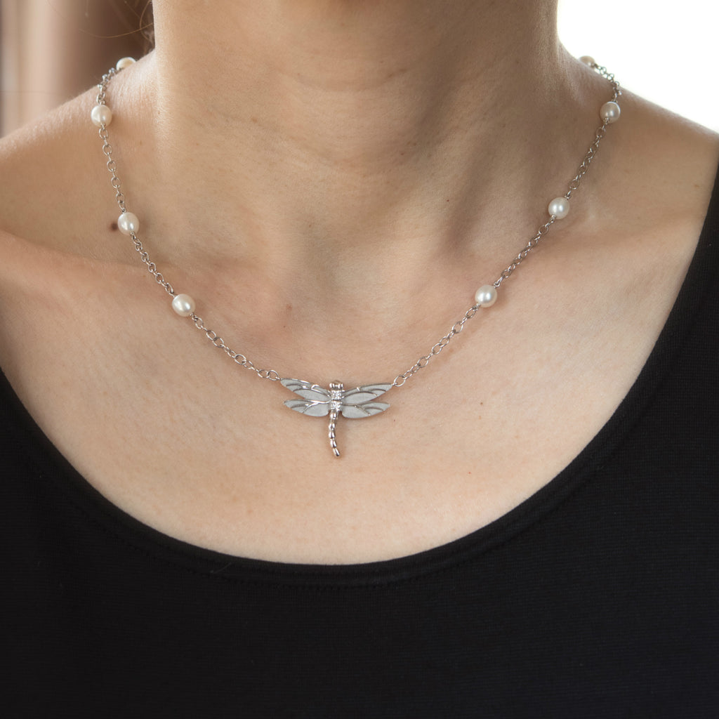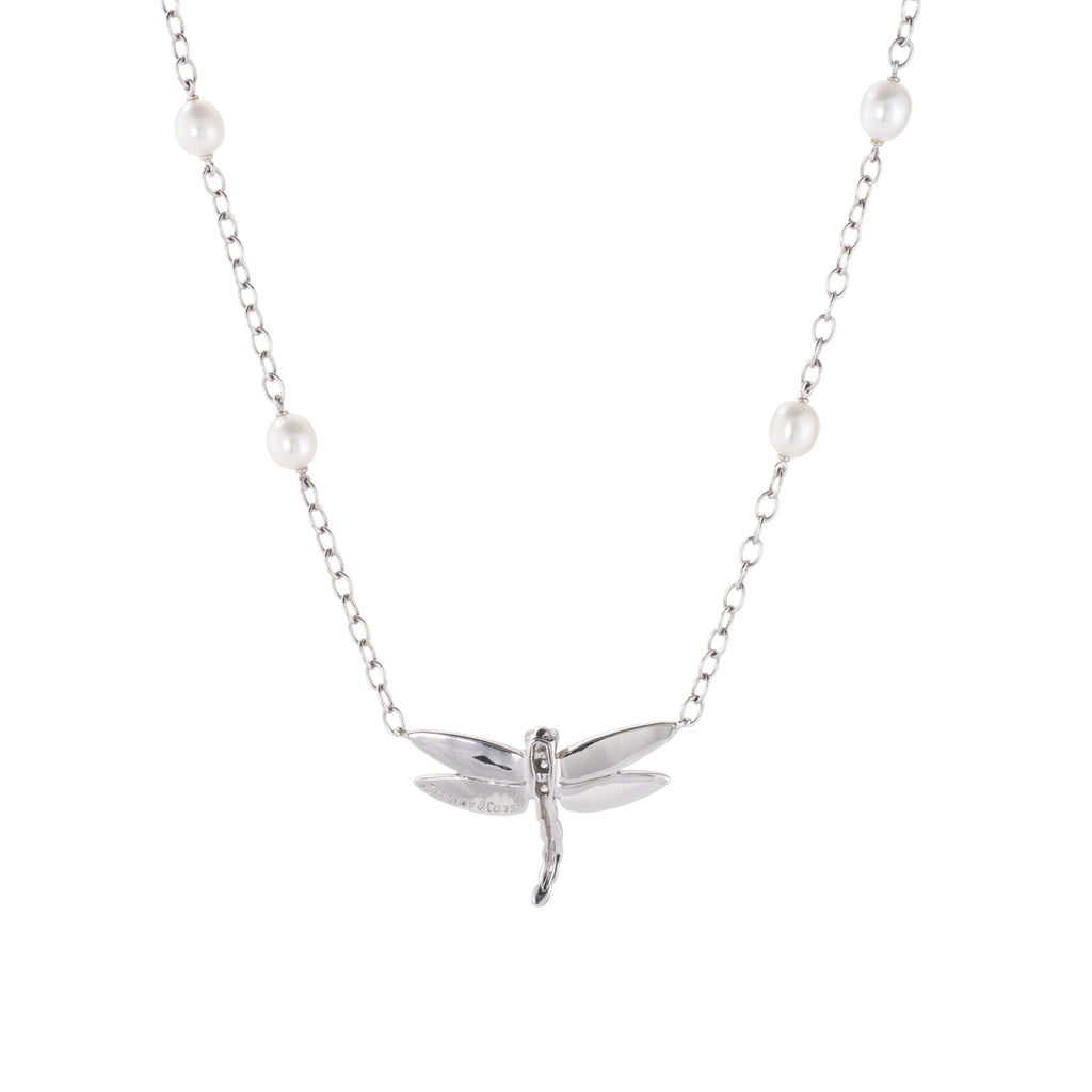 Tiffany & Co Dragonfly Necklace Diamond Pearl Estate 18k White Gold Jewelry
