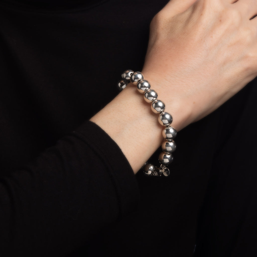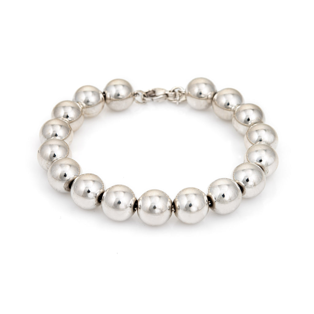 The bracelet features silver beads that are uniform in size (10mm). Great worn alone or layered with your fine jewelry from any era.