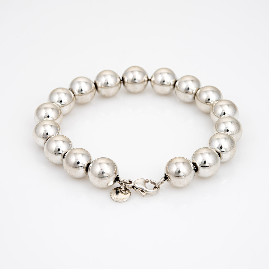 Stylish pre-owned Tiffany & Co graduated silver bead bracelet crafted in 925 sterling silver.