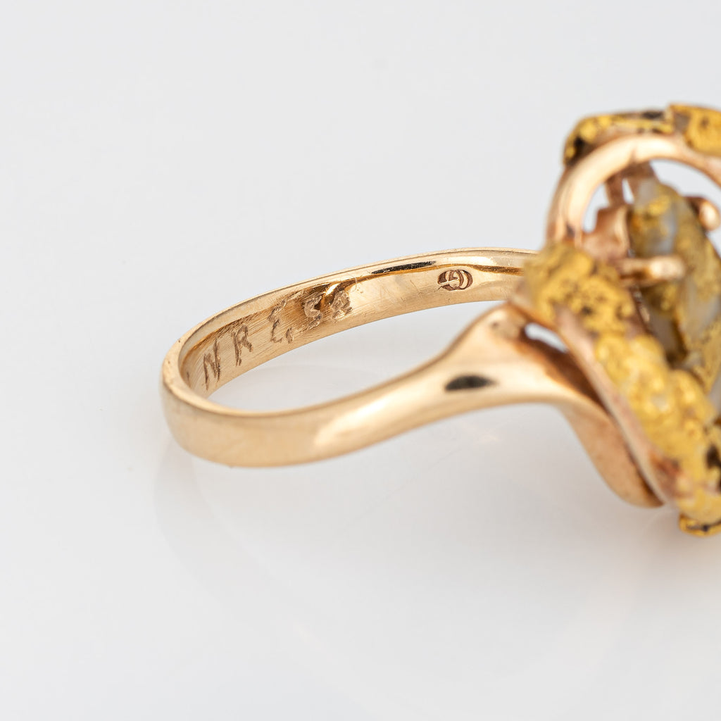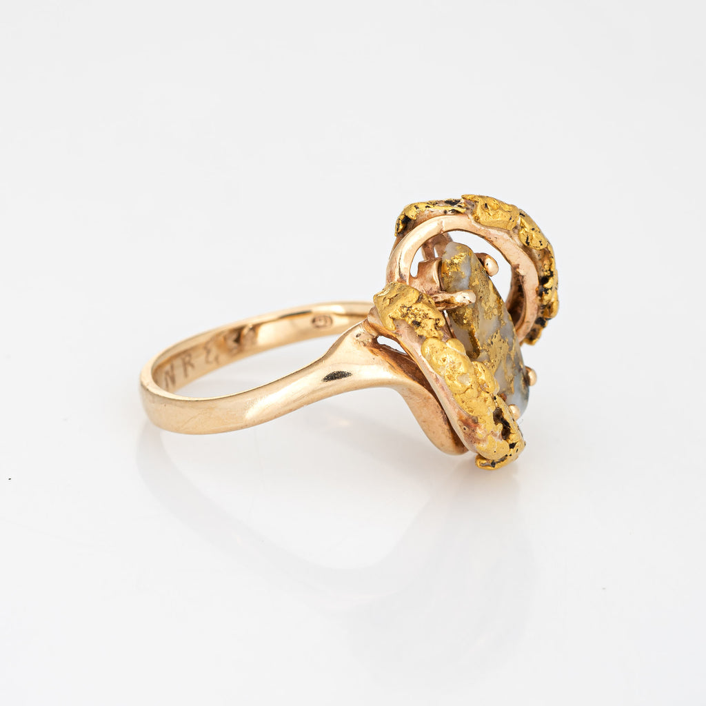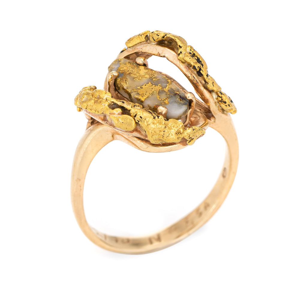 Stylish vintage Gold in Quartz nugget ring (circa 1970s) crafted in 14 karat yellow gold.
