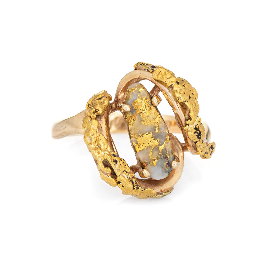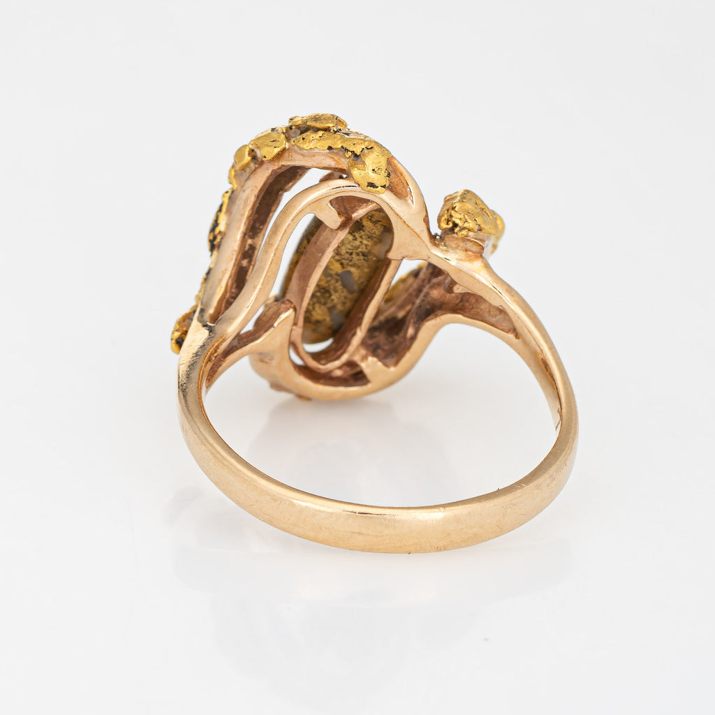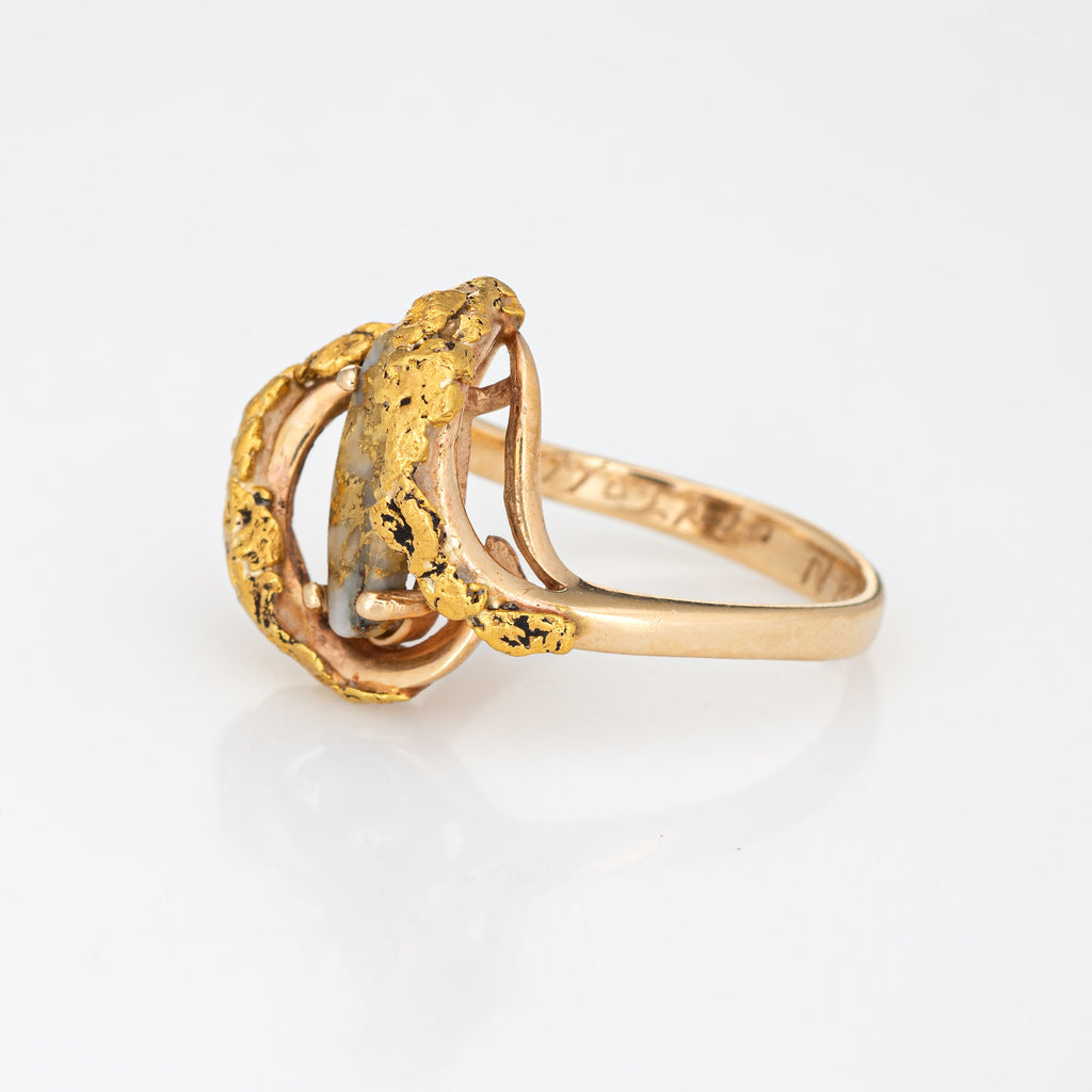 Stylish vintage Gold in Quartz nugget ring (circa 1970s) crafted in 14 karat yellow gold.