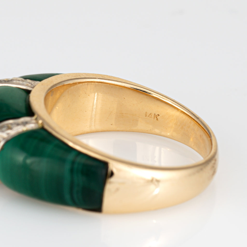 Vintage 70s Malachite Dome Band Diamond 14k Yellow Gold Sz 6.5 Stacking Ring