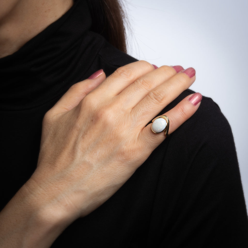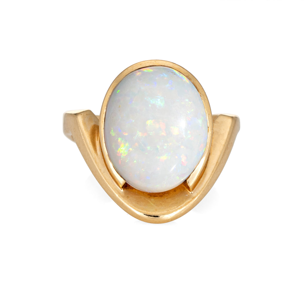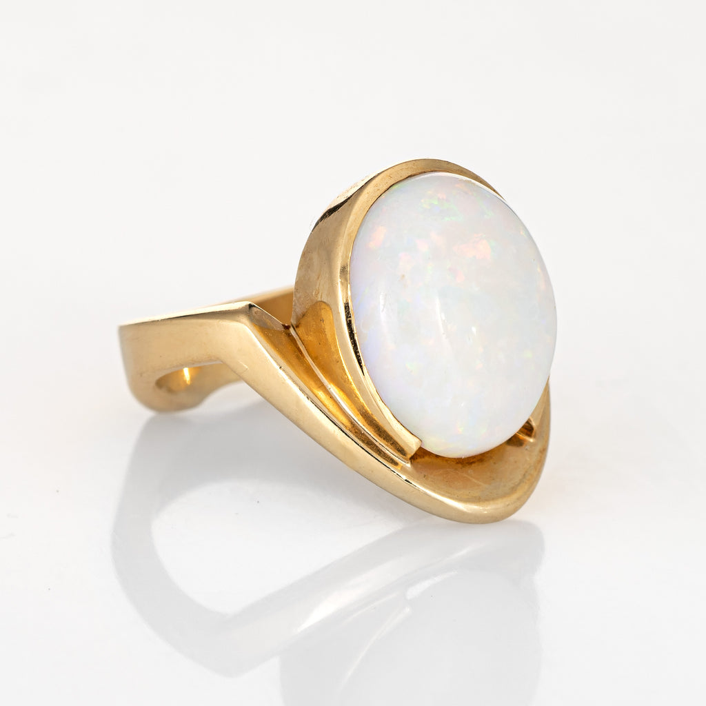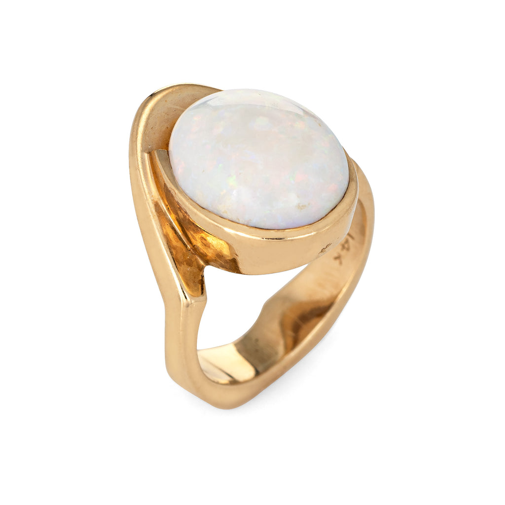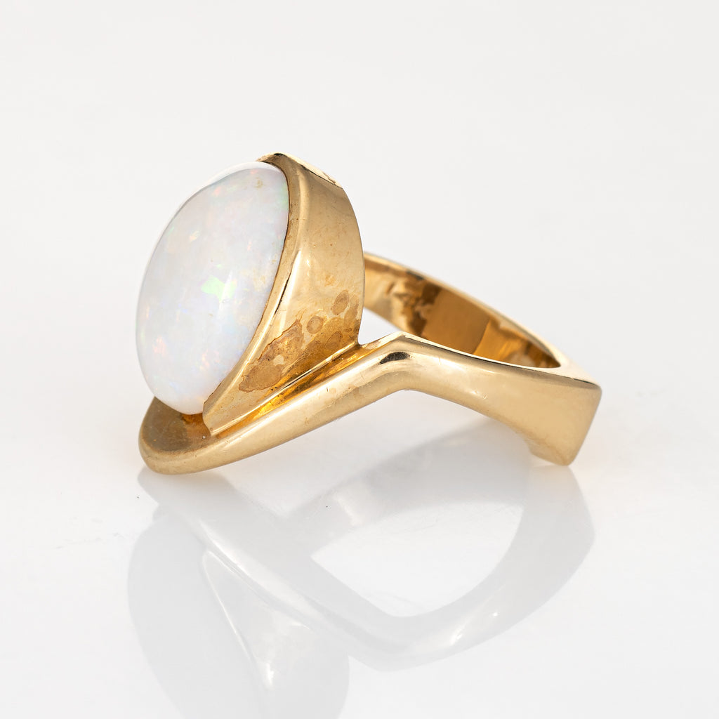Stylish vintage natural opal abstract cocktail ring (circa 1970s to 1980s) crafted in 14 karat yellow gold.