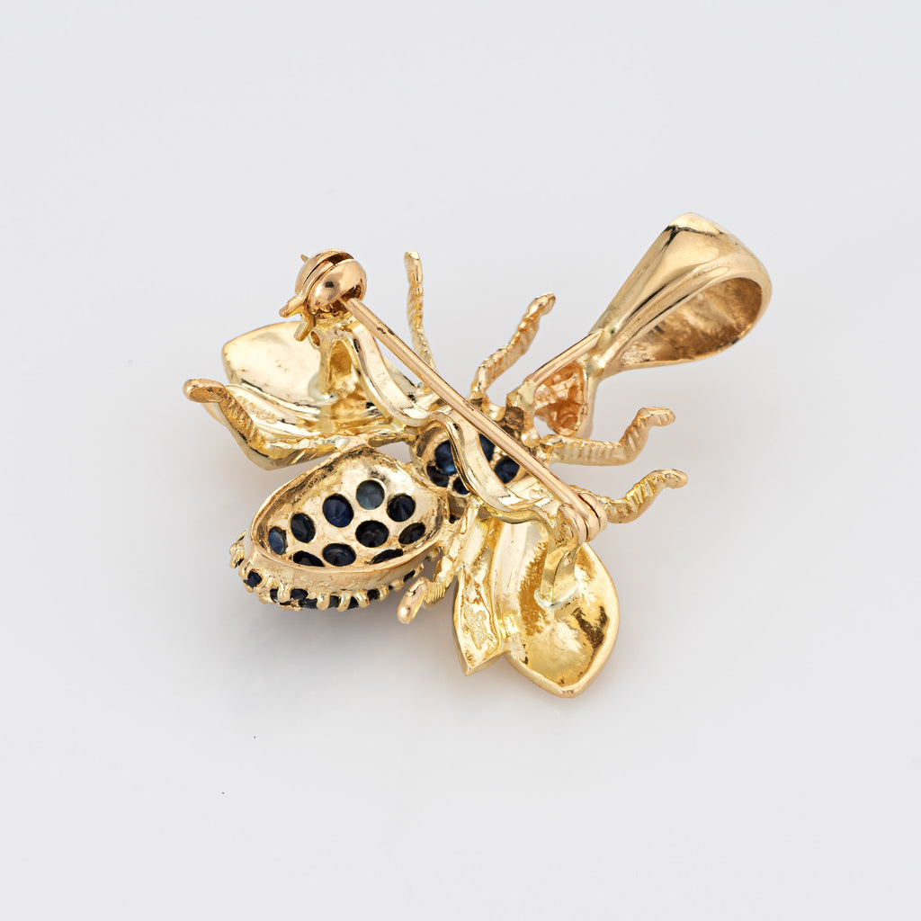 Vintage Bee Pendant Sapphire 14k Yellow Gold Brooch Pin Jewelry Bug Insect