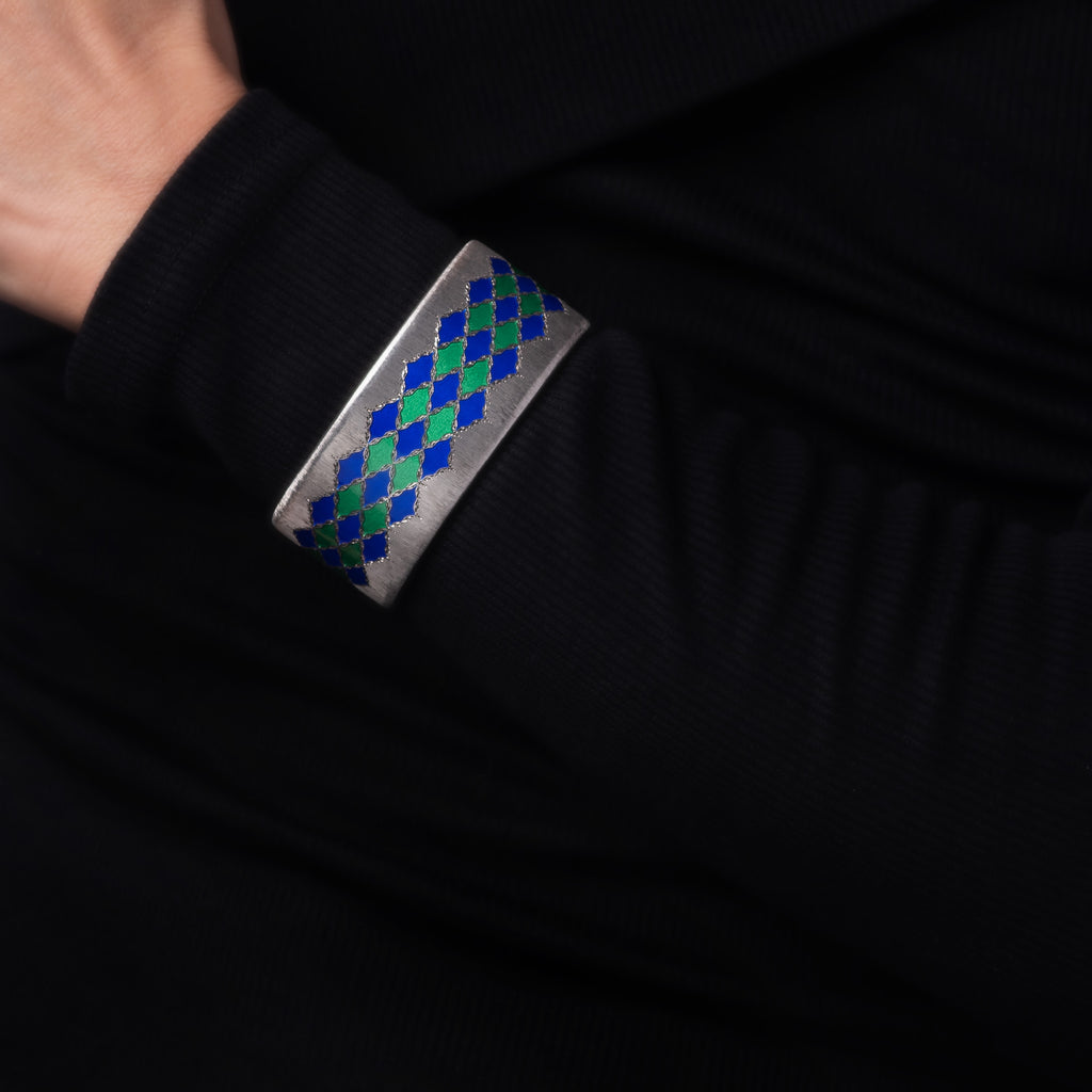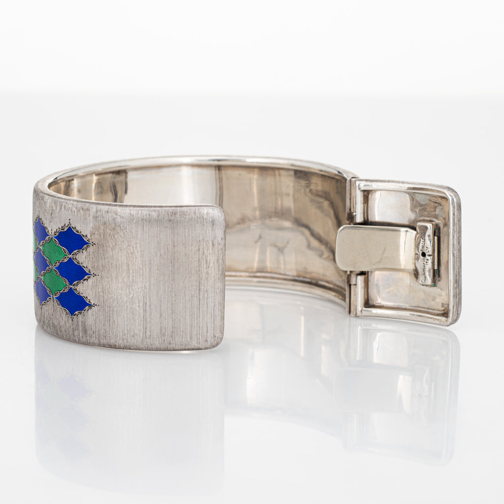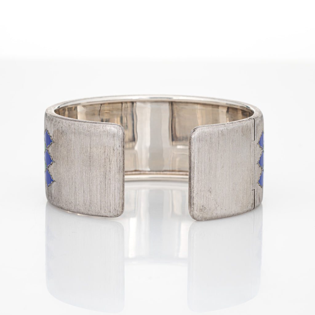 Vintage Buccellati Enamel Bracelet Cuff Sterling Silver Signed Jewelry 1" Wide