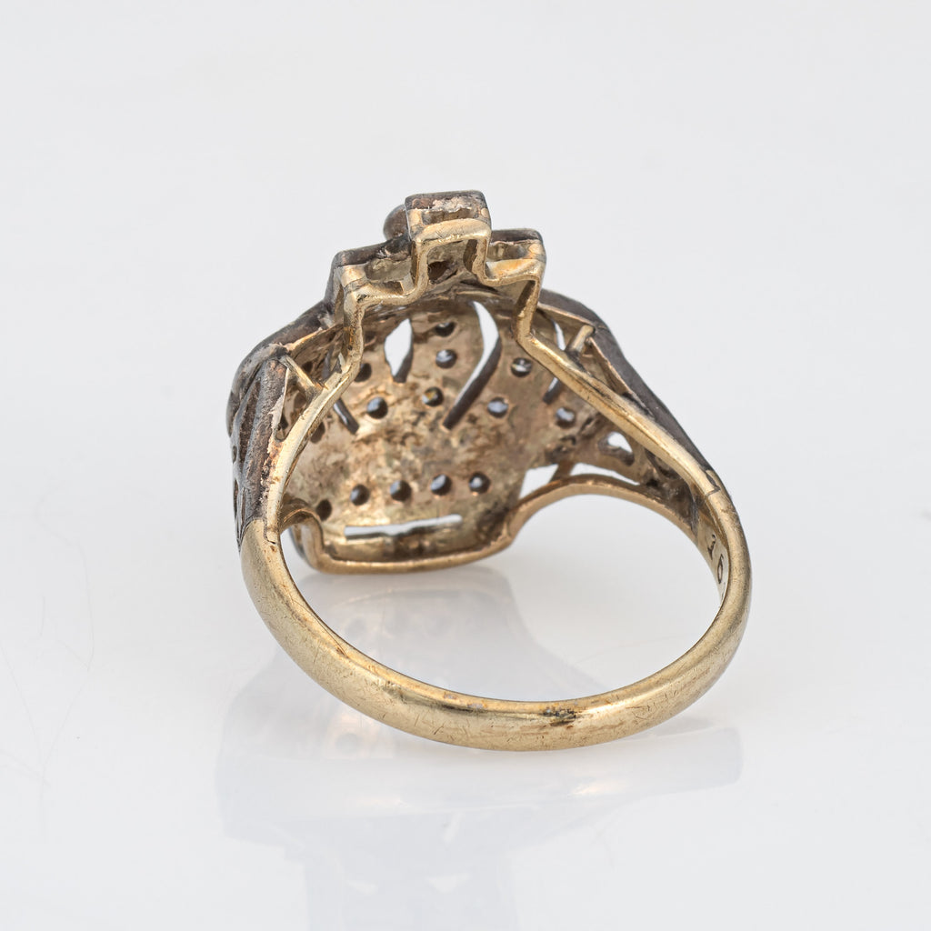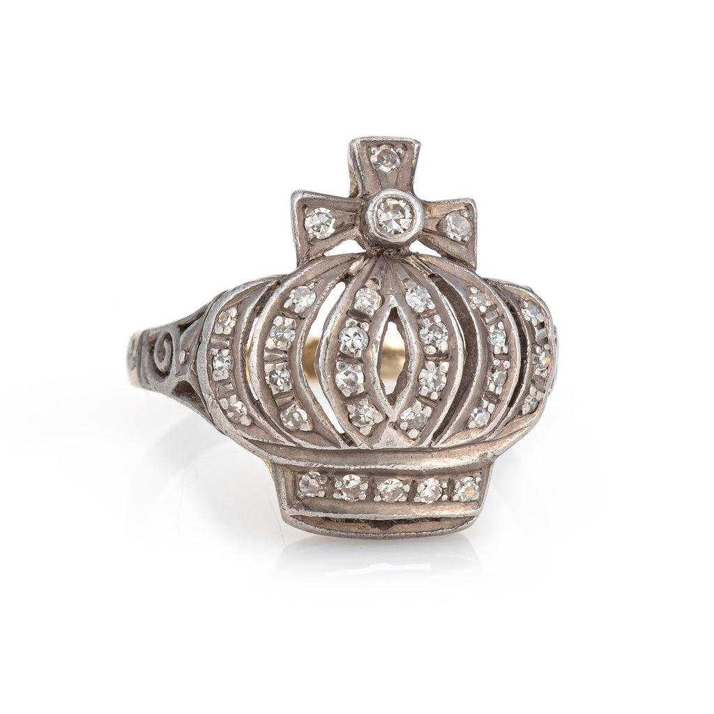 Distinct and stylish vintage diamond crown ring (circa 1950s to 1960s) crafted in 9 karat yellow & white gold.